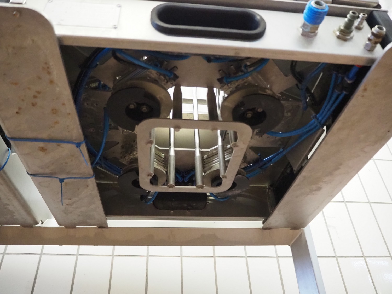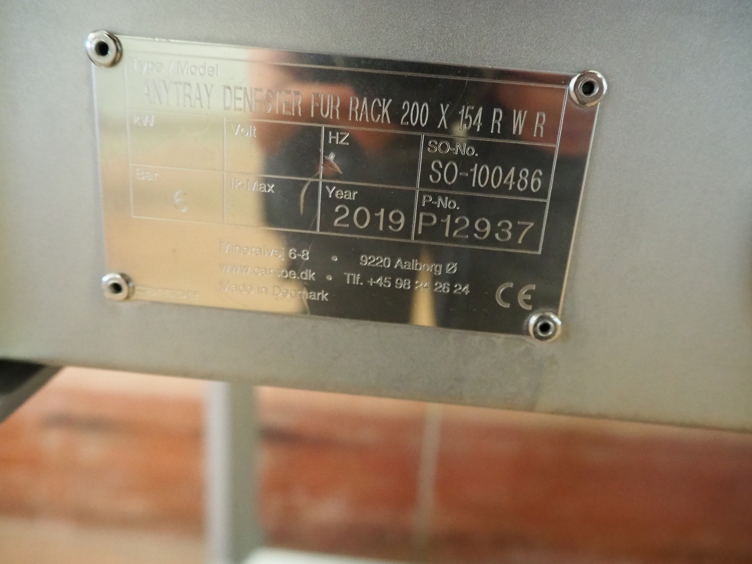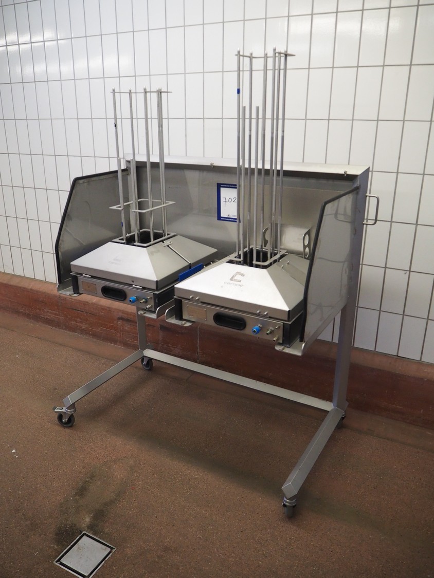 Mobile s/s frame with 2 Carsø denester heads, dimensions: 1300 mm x 700 mm x 1850 mm.