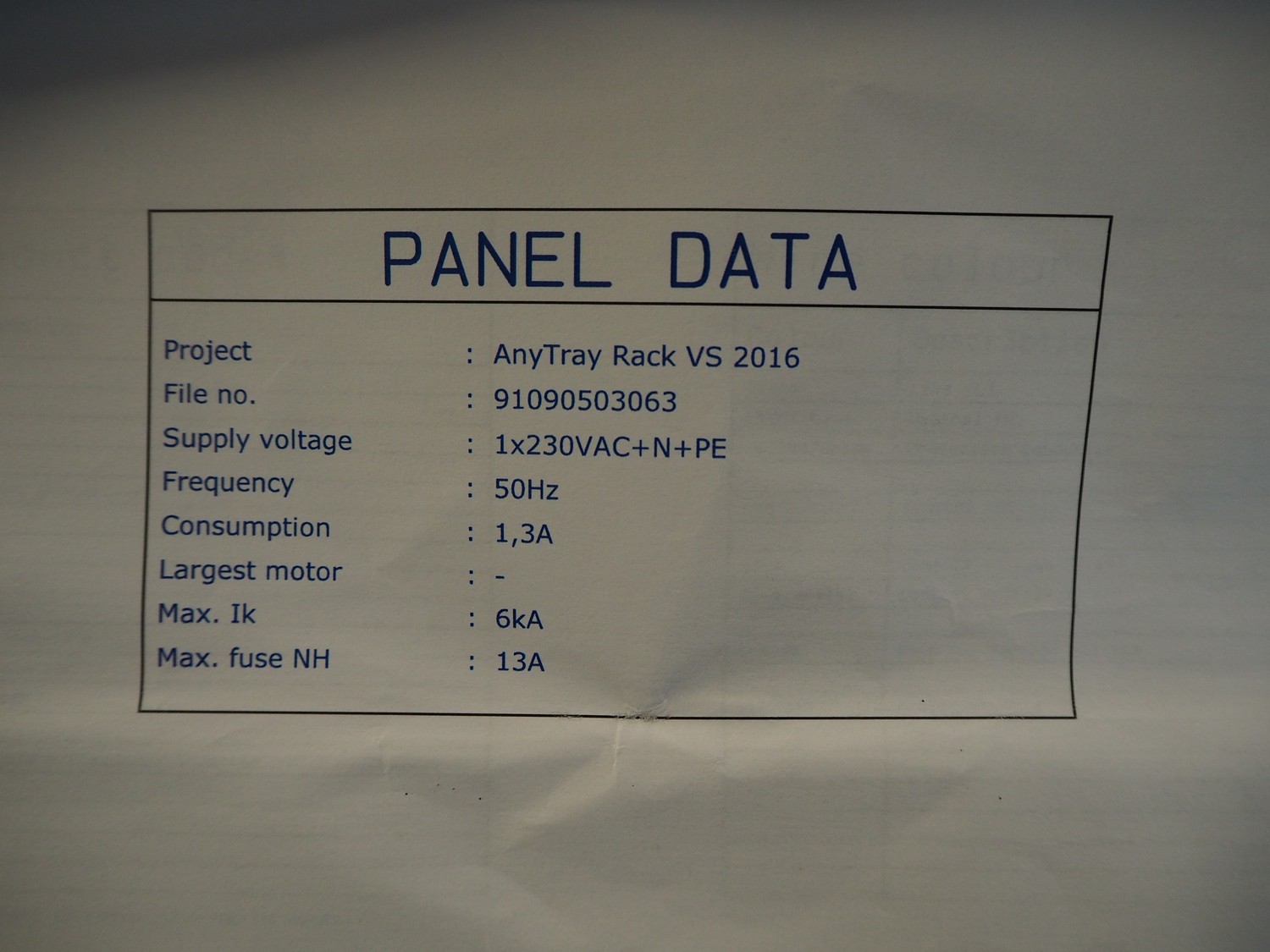 S/s frame for Carsø denester, model: AnyTray Cleanline Single Rack, serial number: SO-100486, year of construction: 2019, 230 V, 1 Ph, dimensions: 820 mm x 530 mm x 1000 mm.
