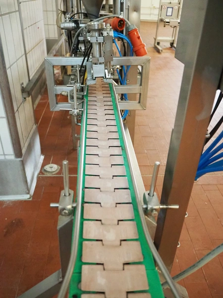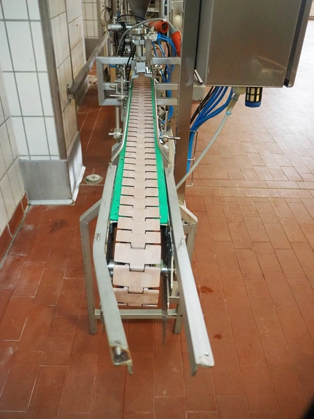 Depositor, plastic belt, belt width: 80 mm, total dimensions: 3020 mm x 560 mm x 2050 mm. Switch cabinet missing buttons.