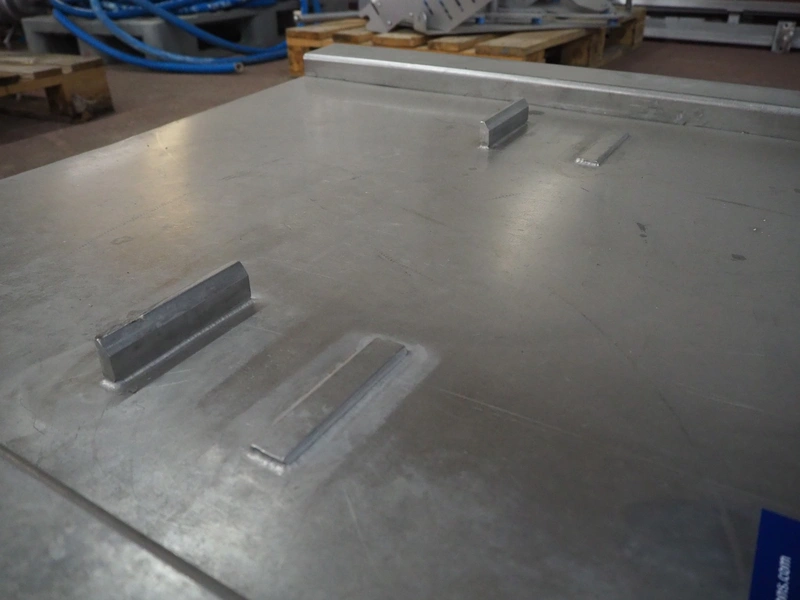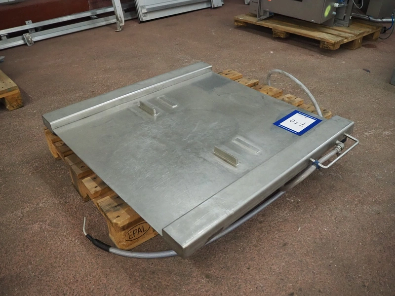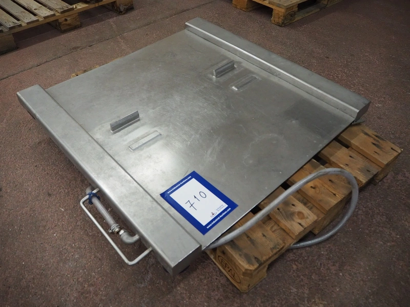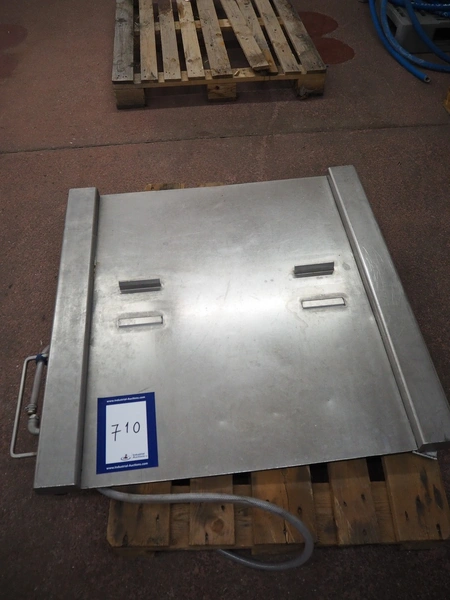 S/s floor weighing scale, dimensions: 1050 mm x 1000 mm x 90 mm. Missing 1 weighing cell.