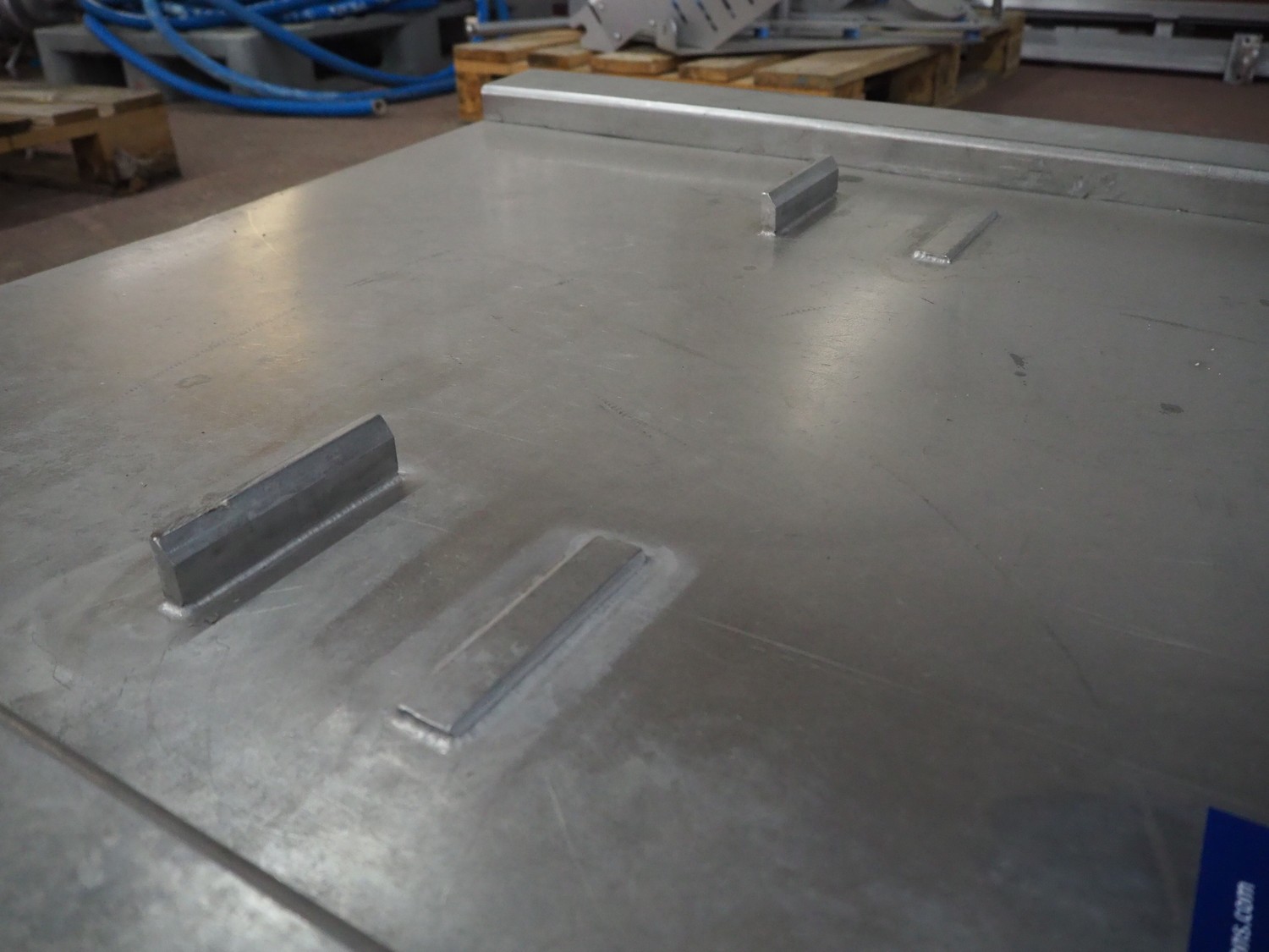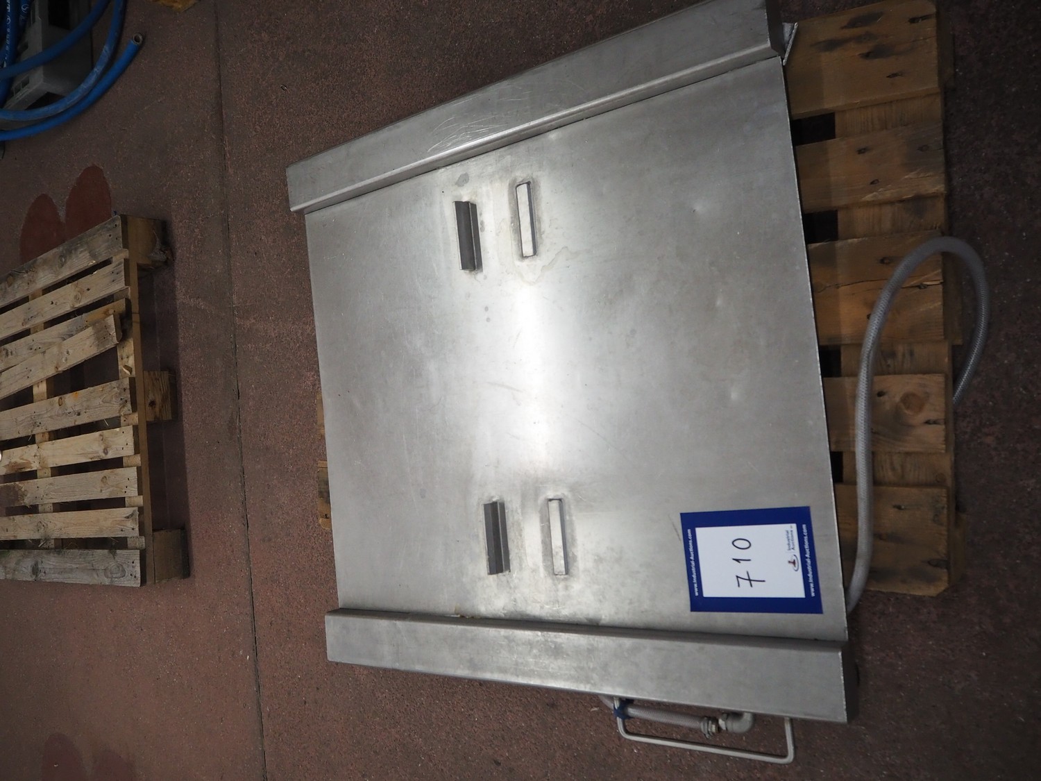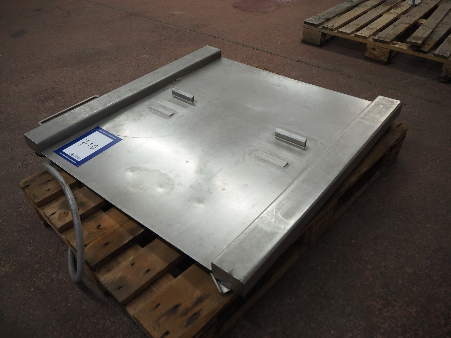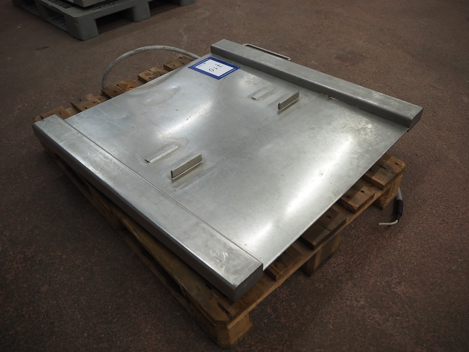 S/s floor weighing scale, dimensions: 1050 mm x 1000 mm x 90 mm. Missing 1 weighing cell.