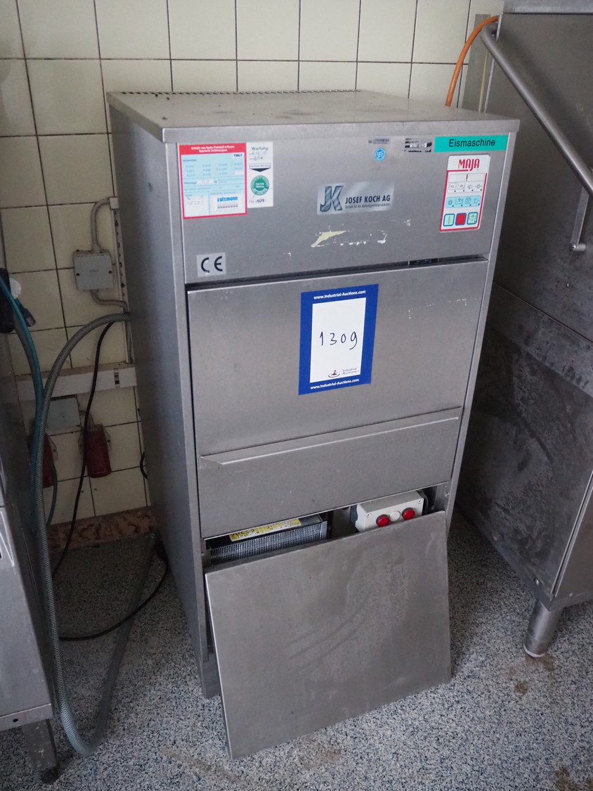 Maja ice machine, machine type: SA 70, machine number: 32227, year of construction: 2003, 230 V, 1 Ph, 50 Hz, 3.9 A, 0.53 kW, refrigerant: R404A, capacity: 70 kg per 24 hours, dimensions: 600 mm x 700 mm x 1270 mm.