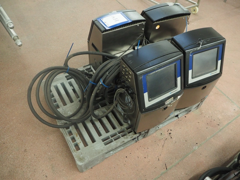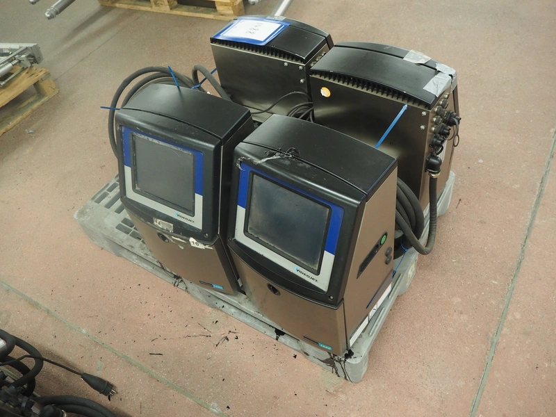 4 Videojet inkjet printers, model: (2x) 1650, (2x) 1660, serial number: 1610002C47ZH, 1610004C47ZH, 1409769C30ZH, 1234329C30ZH, dimensions: (4x) 350 mm x 300 mm x 570 mm. Technical condition unknown.