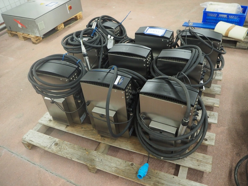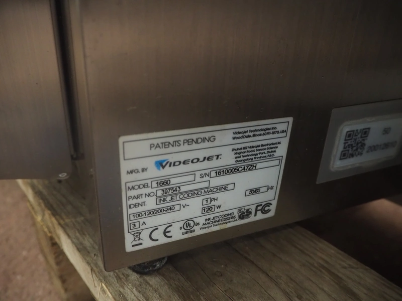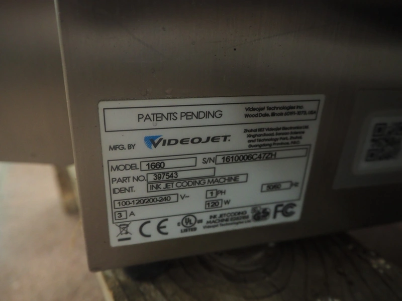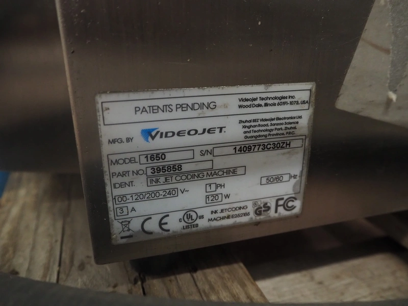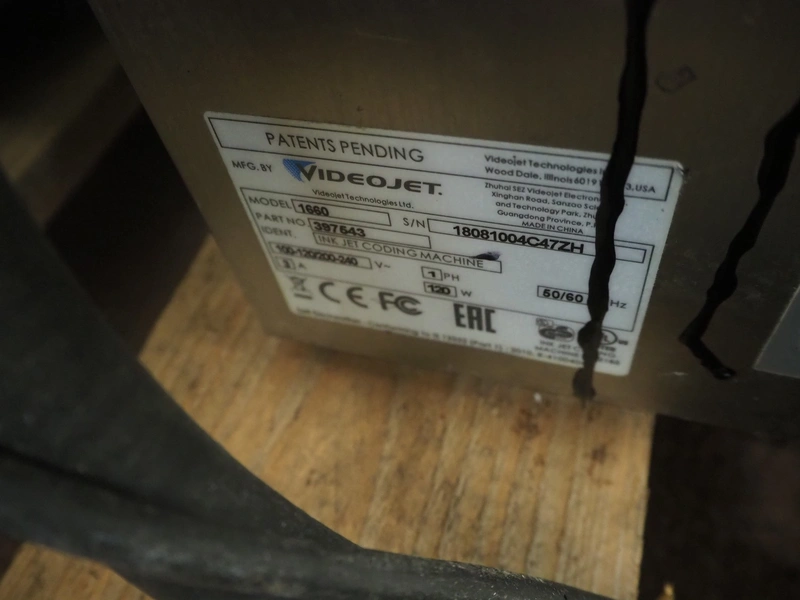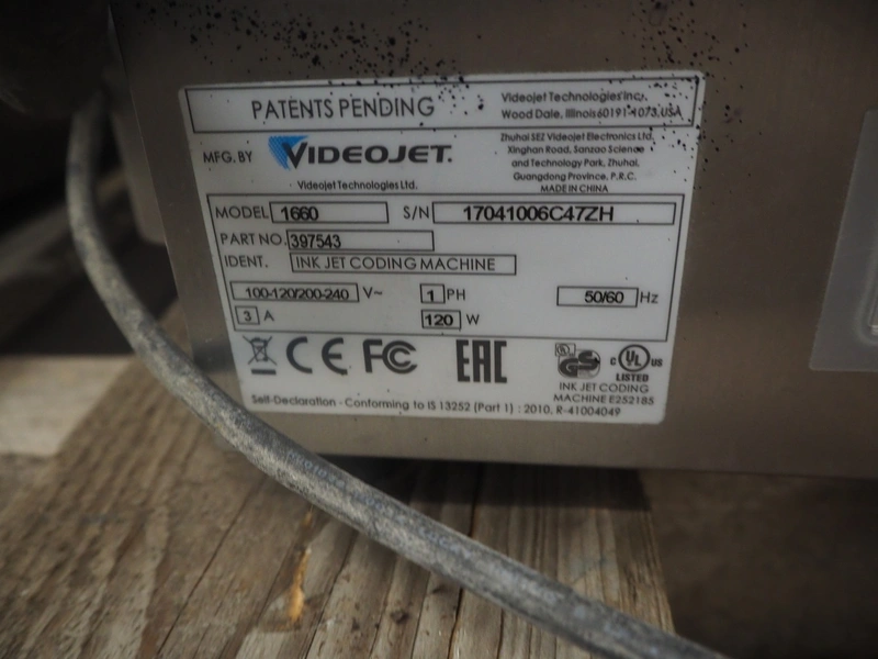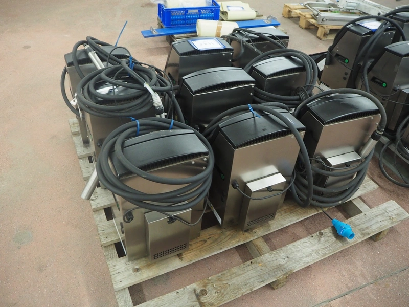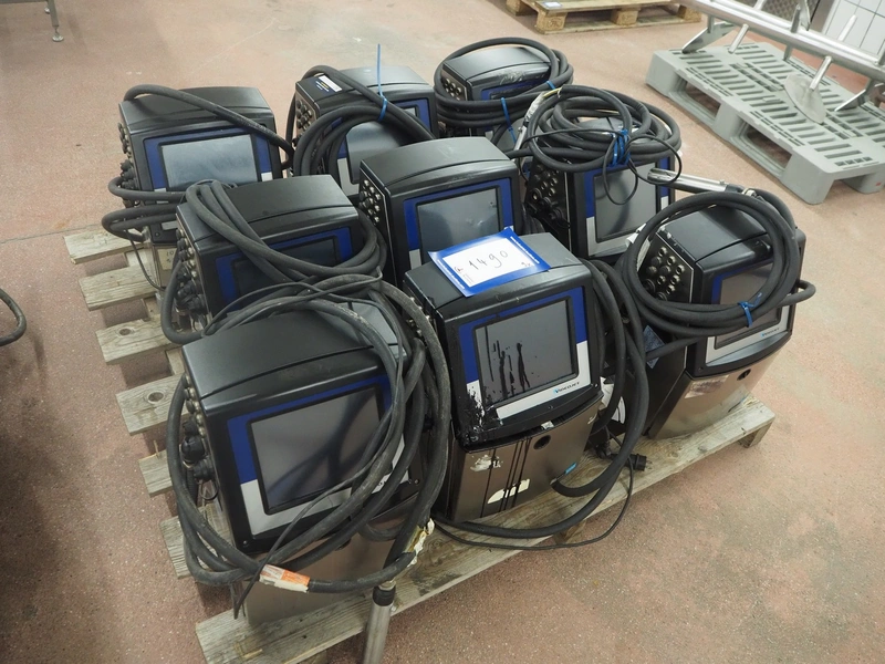 9 Videojet inkjet printers, model: (3x) 1650 and (6x) 1660, serial number: 1417996C30ZH, 18081004C47ZH, 17041006C47ZH, 1610006C47ZH, 1610005C47ZH, 1409773C30ZH, 1433209C47ZH, 1409772C30ZH, 17076007C47ZH, dimensions: (9x) 350 mm x 300 mm x 570 mm. Technical condition unknown.