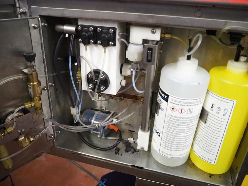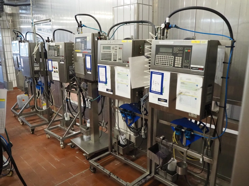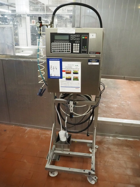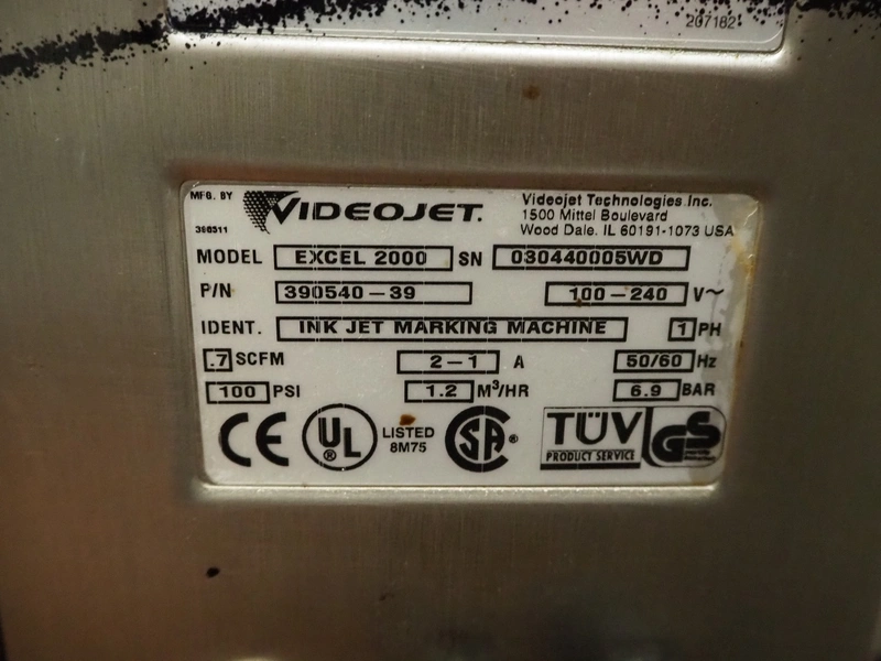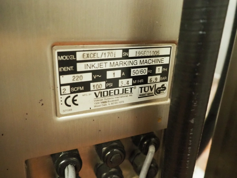 6 Videojet mobile inkjet printers, model: EXCEL 2000 and Excel/170i, 100-240 V, 1 Ph, 50/60 Hz, 2-1 A, dimensions: (6x) 850 mm x 700 mm x 1650 mm. Technical condition unknown.