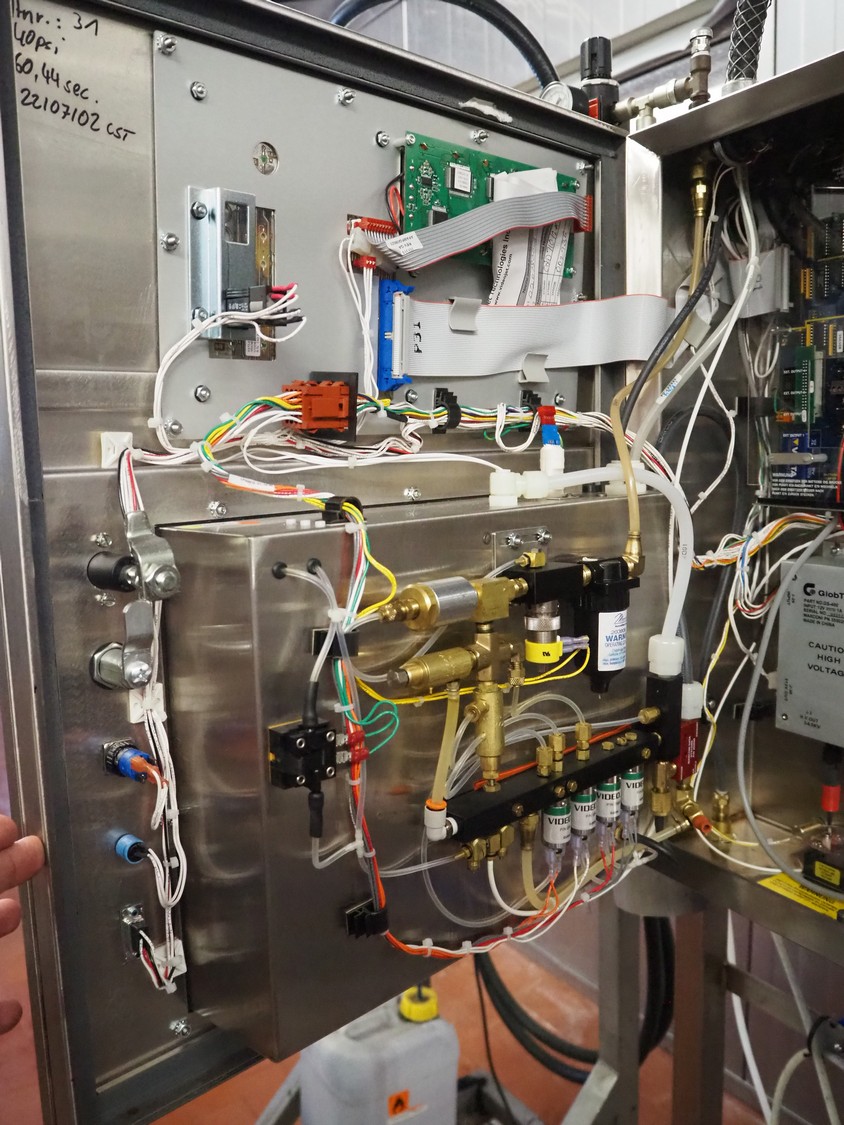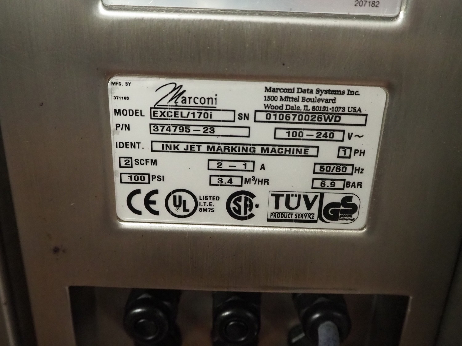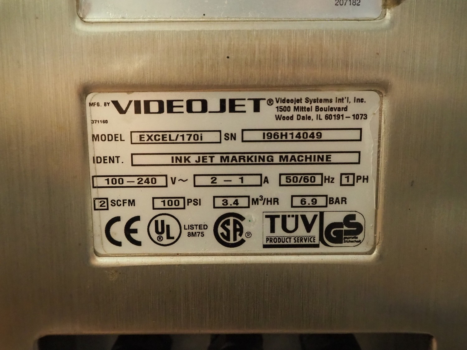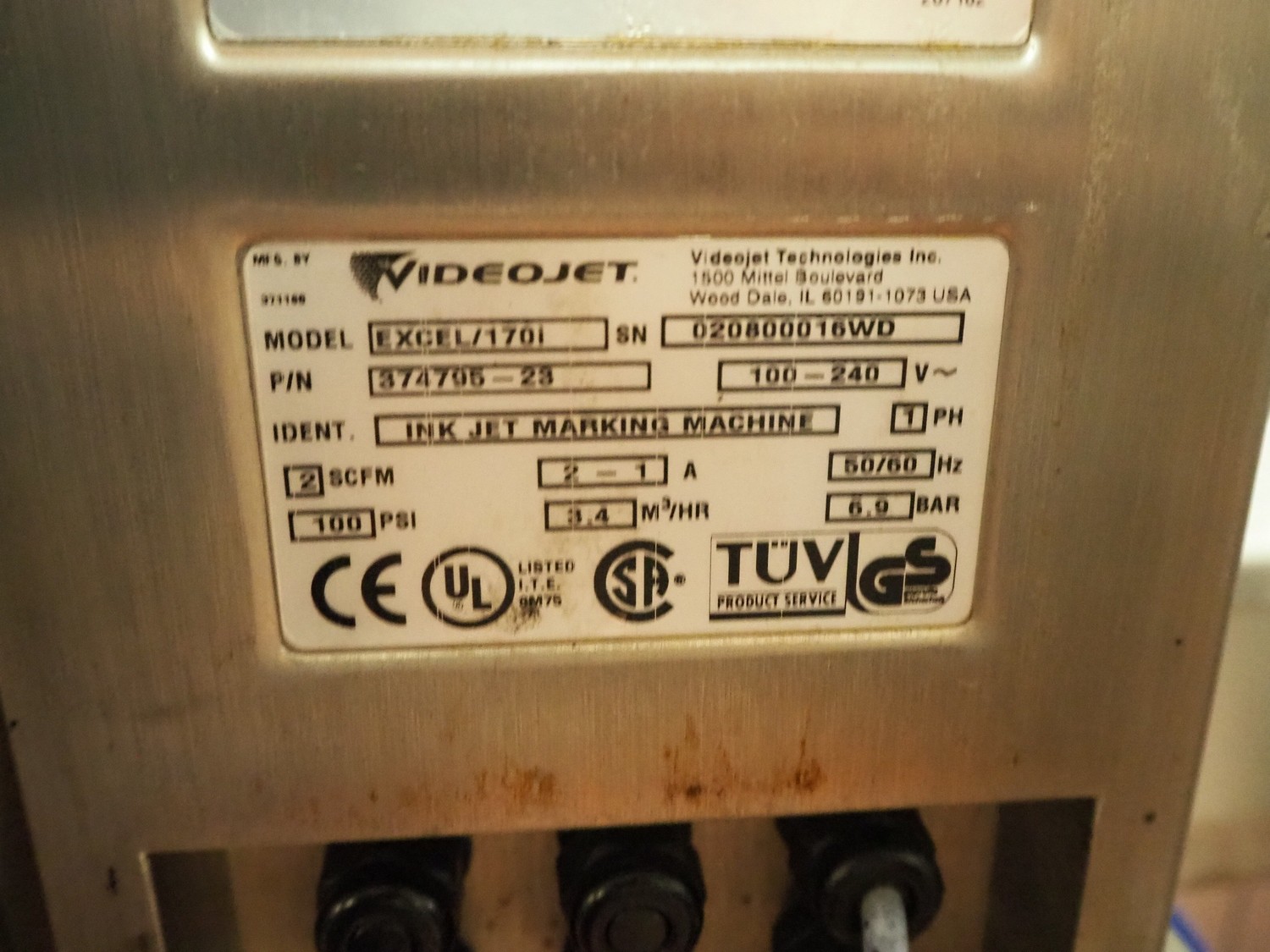 6 Videojet mobile inkjet printers, model: EXCEL 2000 and Excel/170i, 100-240 V, 1 Ph, 50/60 Hz, 2-1 A, dimensions: (6x) 850 mm x 700 mm x 1650 mm. Technical condition unknown.
