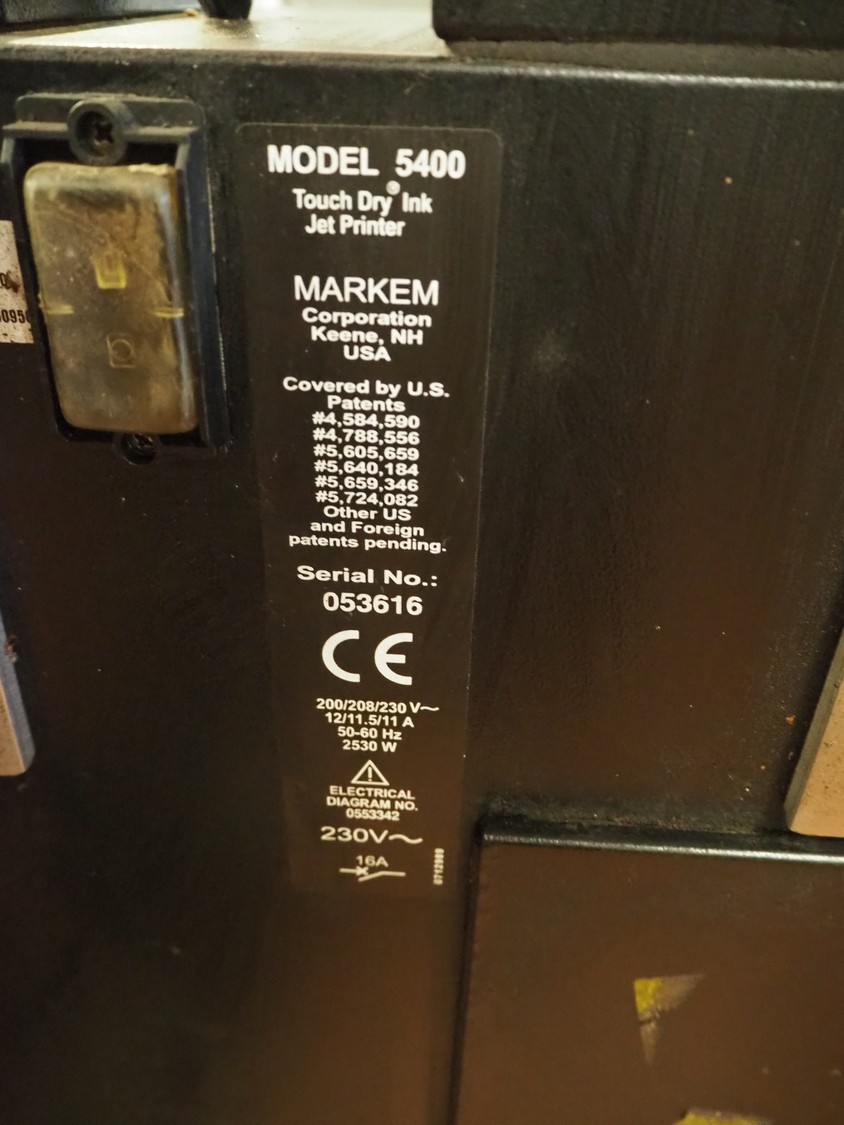 2 Markem mobile barcode printers, model: 5400, serial number: 053617 and 053616, dimensions: (2x) 600 mm x 500 mm x 1250 mm.