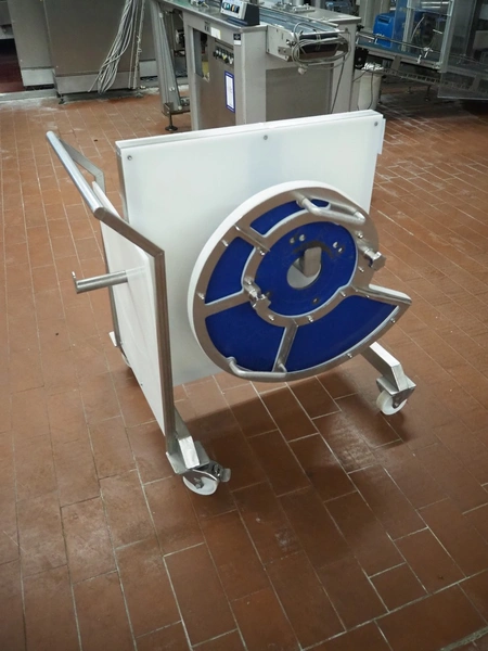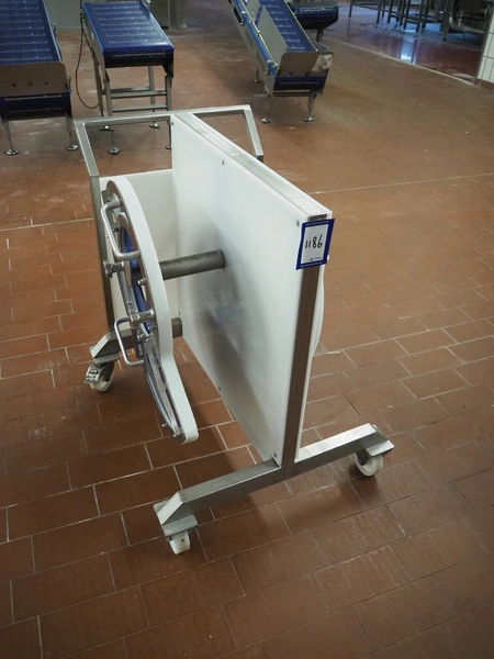 S/s trolley with 2 slicer knives, dimensions knife: (2x) 600 mm x 700 mm, total dimensions: 870 mm x 700 mm x 870 mm.