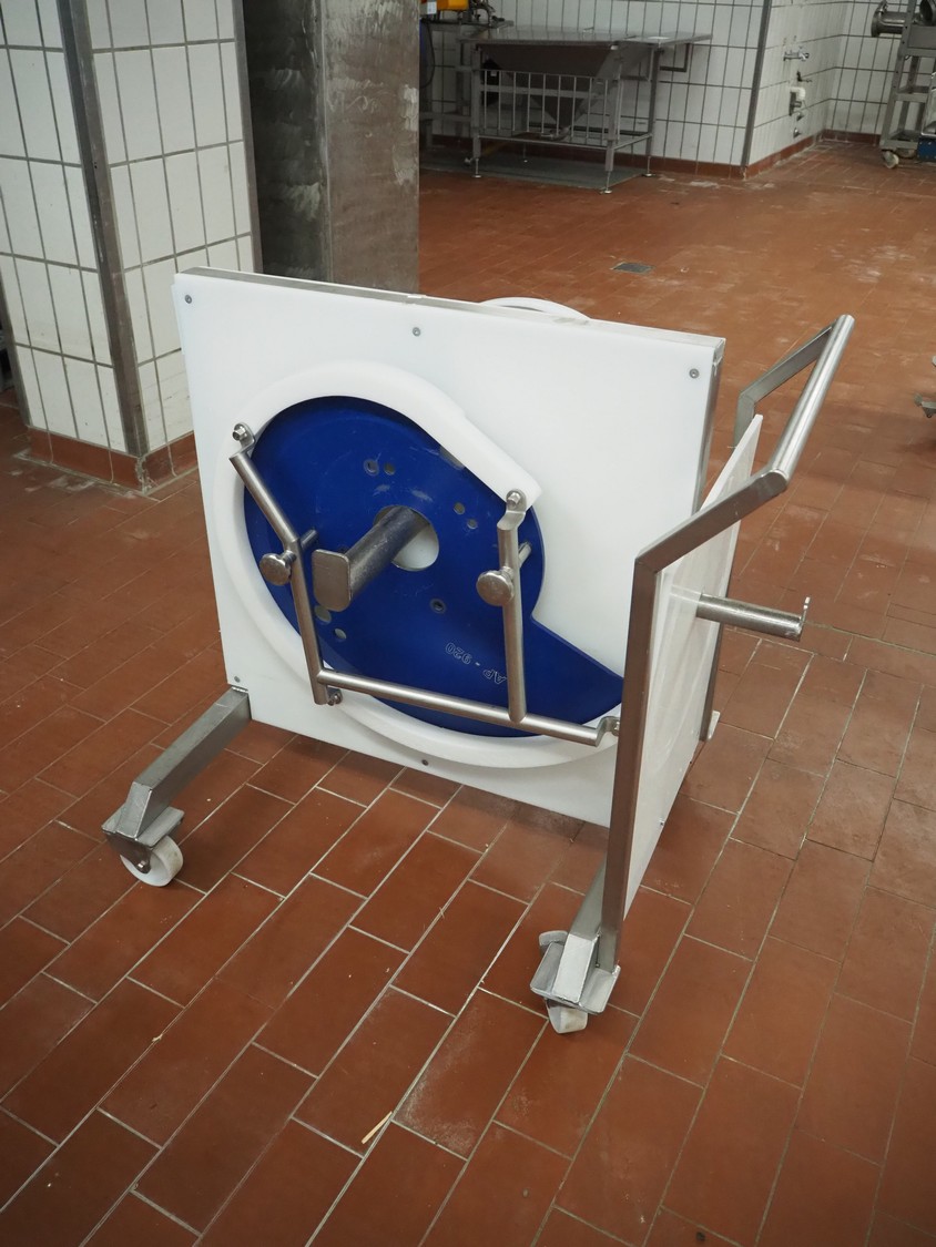 S/s trolley with 2 slicer knives, dimensions knife: (2x) 600 mm x 700 mm, total dimensions: 870 mm x 700 mm x 870 mm.
