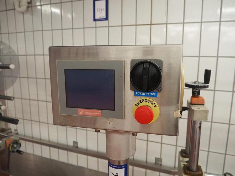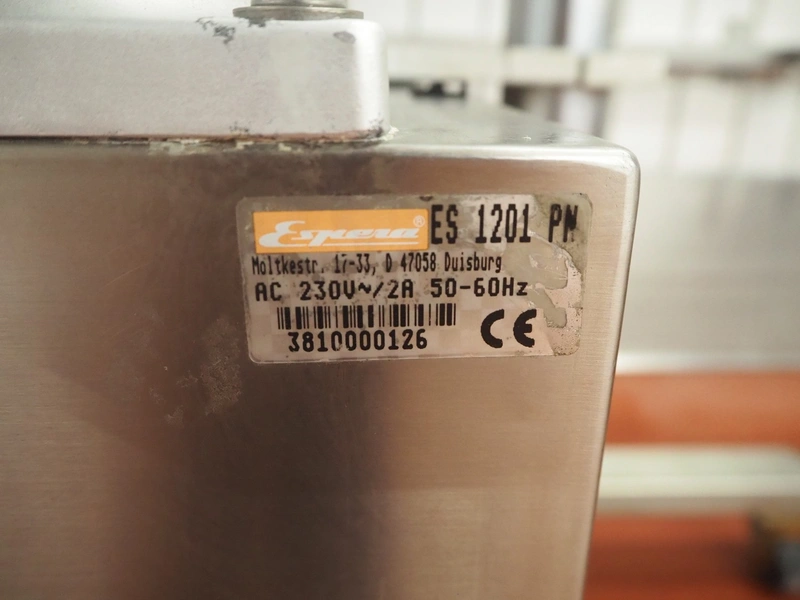 Espera mobile labelling machine, model: ES 1201 PN, serial number: 3810000126, 230 V, 50/60 Hz, 2 A, dimensions: 1100 mm x 700 mm x 1700 mm.