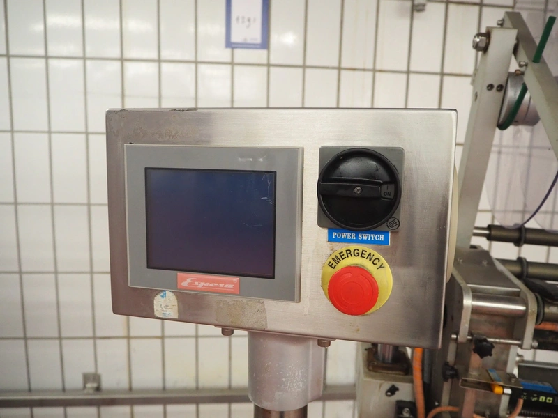 Espera mobile labelling machine, model: ES 1201 PN, serial number: 3810000125, 230 V, 50/60 Hz, 2 A, dimensions: 1100 mm x 700 mm x 1700 mm.