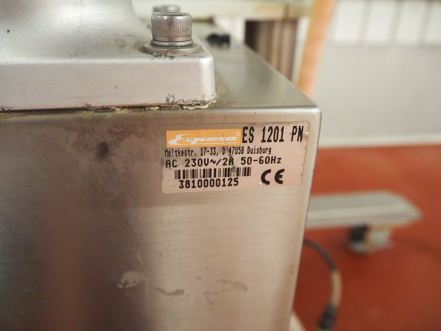Espera mobile labelling machine, model: ES 1201 PN, serial number: 3810000125, 230 V, 50/60 Hz, 2 A, dimensions: 1100 mm x 700 mm x 1700 mm.