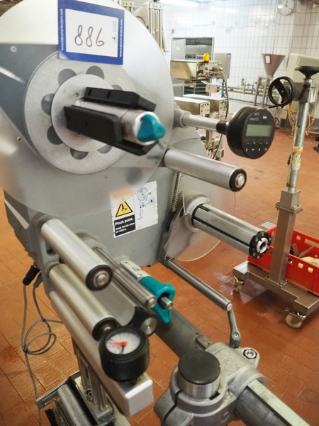 Avery Dennison mobile labelling machine, type: ALS256, serial number: 0016160805-ALS256, 100-240 V, 60/50 Hz, 4-2 A, dimensions: 900 mm x 800 mm x 1700 mm.