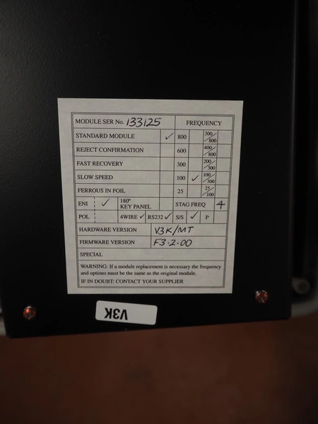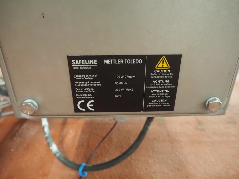 Safeline metal detector, module number: 133125, plastic belt, belt width: 220 mm, clearance: 350 mm x 140 mm, total dimensions: 1200 mm x 900 mm x 1200 mm.