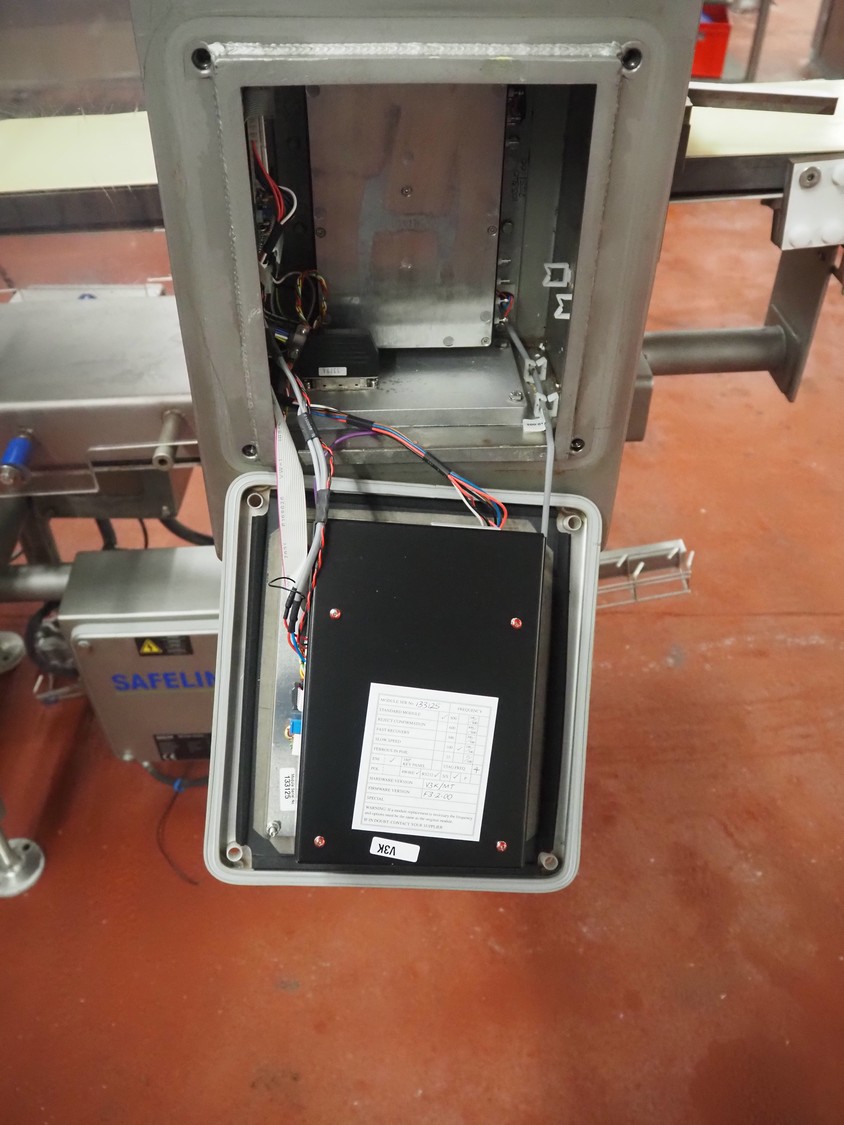 Safeline metal detector, module number: 133125, plastic belt, belt width: 220 mm, clearance: 350 mm x 140 mm, total dimensions: 1200 mm x 900 mm x 1200 mm.