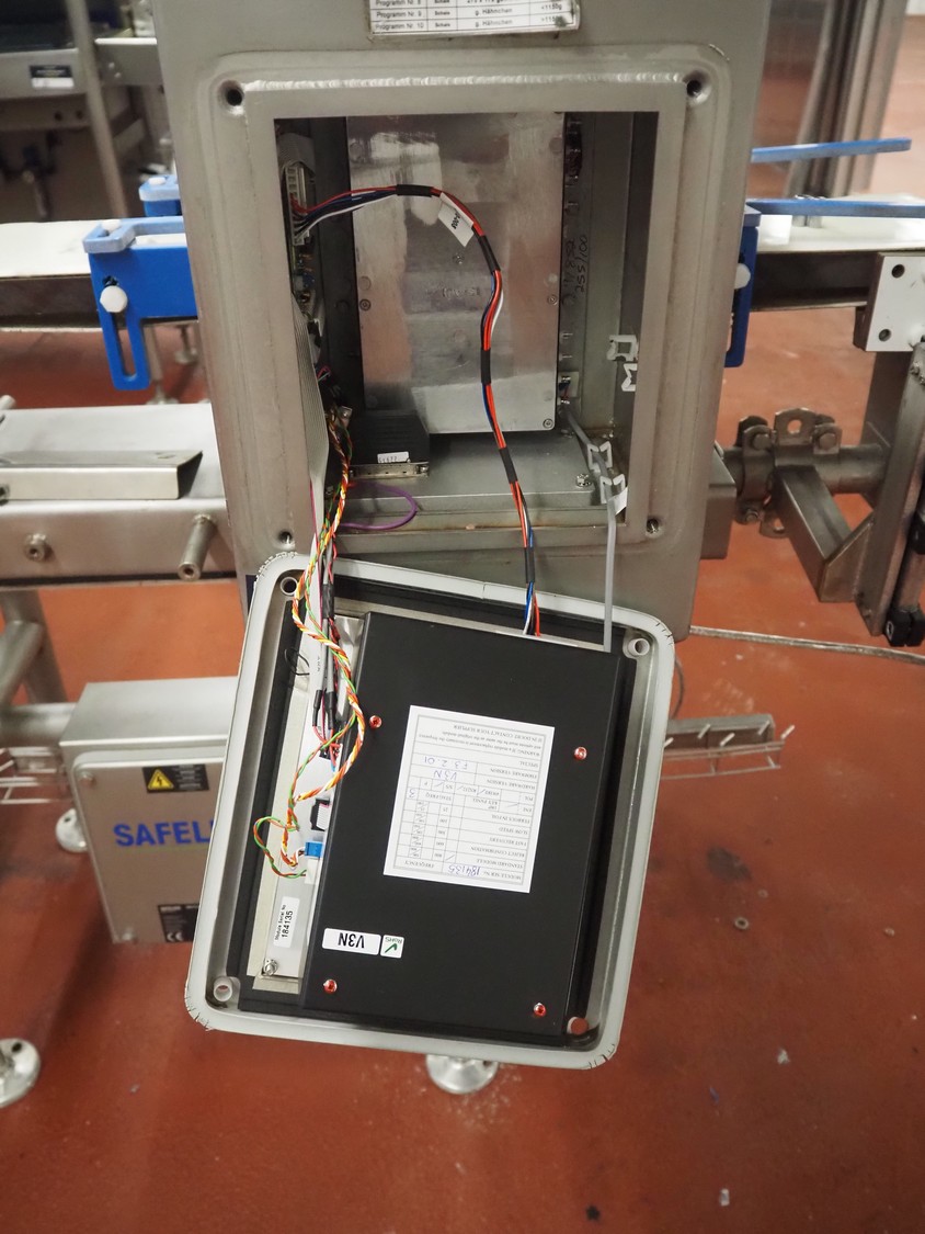 Safeline metal detector, module number: 184135, plastic belt, belt width: 220 mm, clearance: 350 mm x 140 mm, total dimensions: 1200 mm x 900 mm x 1200 mm.