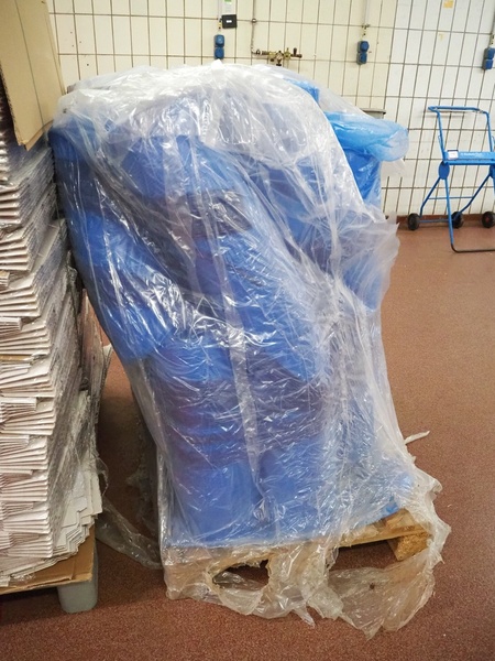 Pallet with large amount of plastic lids for buckets, diameter lids: 220 mm.