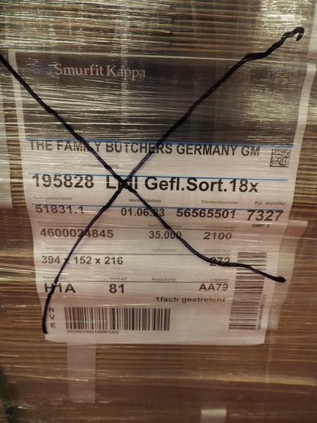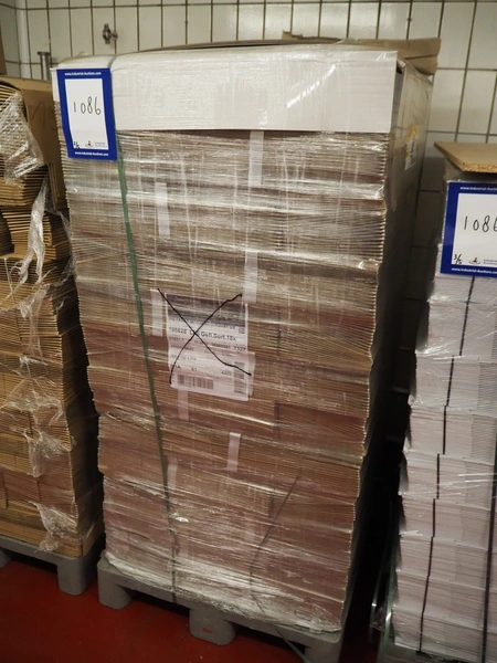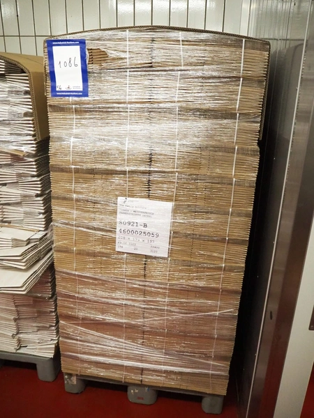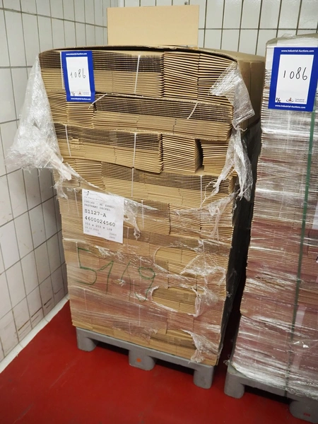 5 pallets with Smurfit Kappa carton boxes, dimensions boxes: (1x) 353 mm x 203 mm x 128 mm, (1x) 345 mm x 120 mm x 195 mm, (1x) 375 mm x 225 mm x 140 mm, (1x) 394 mm x 152 mm x 216 mm, (1x) 208 mm x 179 mm x 197 mm, total dimensions: (5x) 1200 mm x 800 mm x 1700 mm.