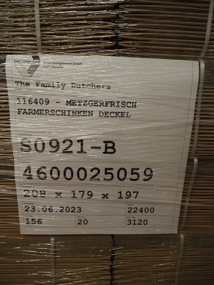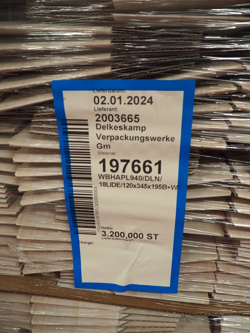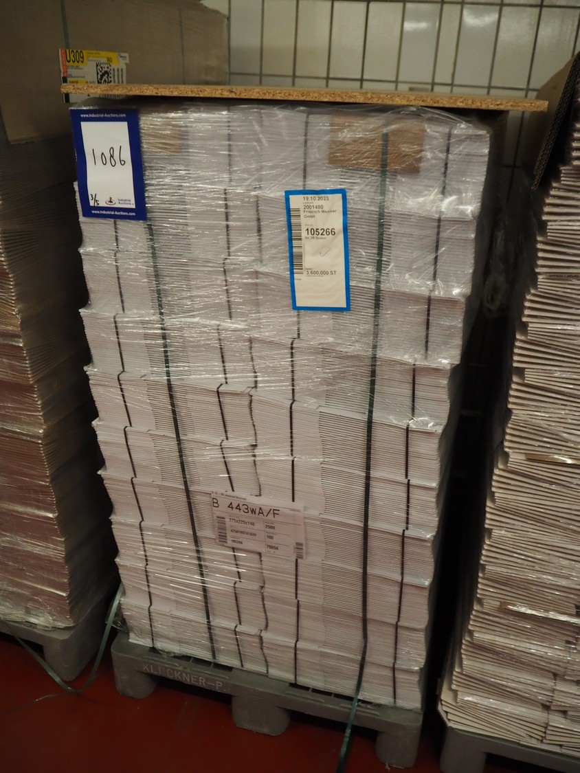 5 pallets with Smurfit Kappa carton boxes, dimensions boxes: (1x) 353 mm x 203 mm x 128 mm, (1x) 345 mm x 120 mm x 195 mm, (1x) 375 mm x 225 mm x 140 mm, (1x) 394 mm x 152 mm x 216 mm, (1x) 208 mm x 179 mm x 197 mm, total dimensions: (5x) 1200 mm x 800 mm x 1700 mm.