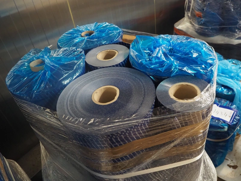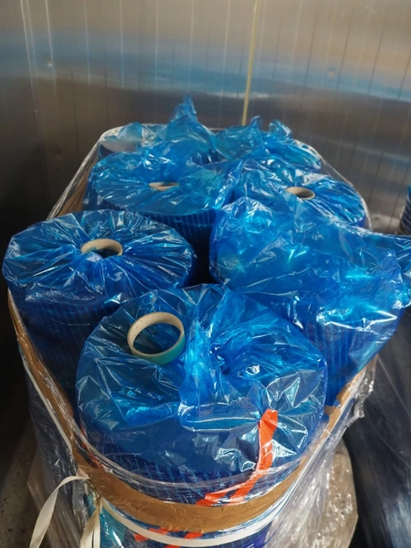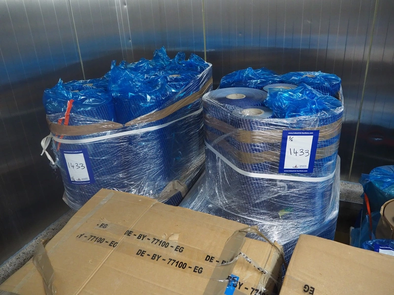 2 pallets with 27 rolls of Südpack film, type: Econyl Ng/G/Puv 105 f W, film width: 555, total dimensions: (2x) 1260 mm x 800 mm x 1300 mm.