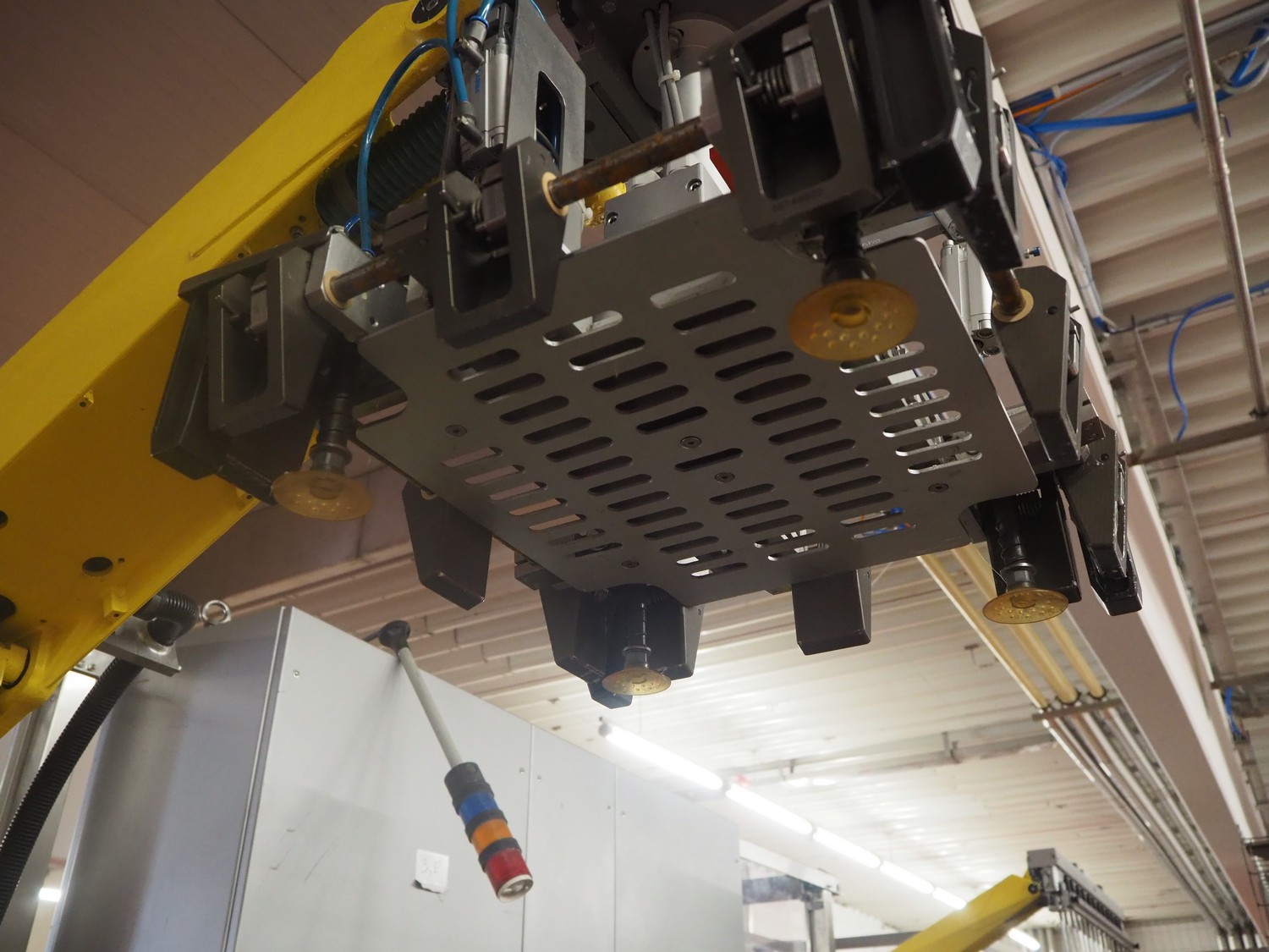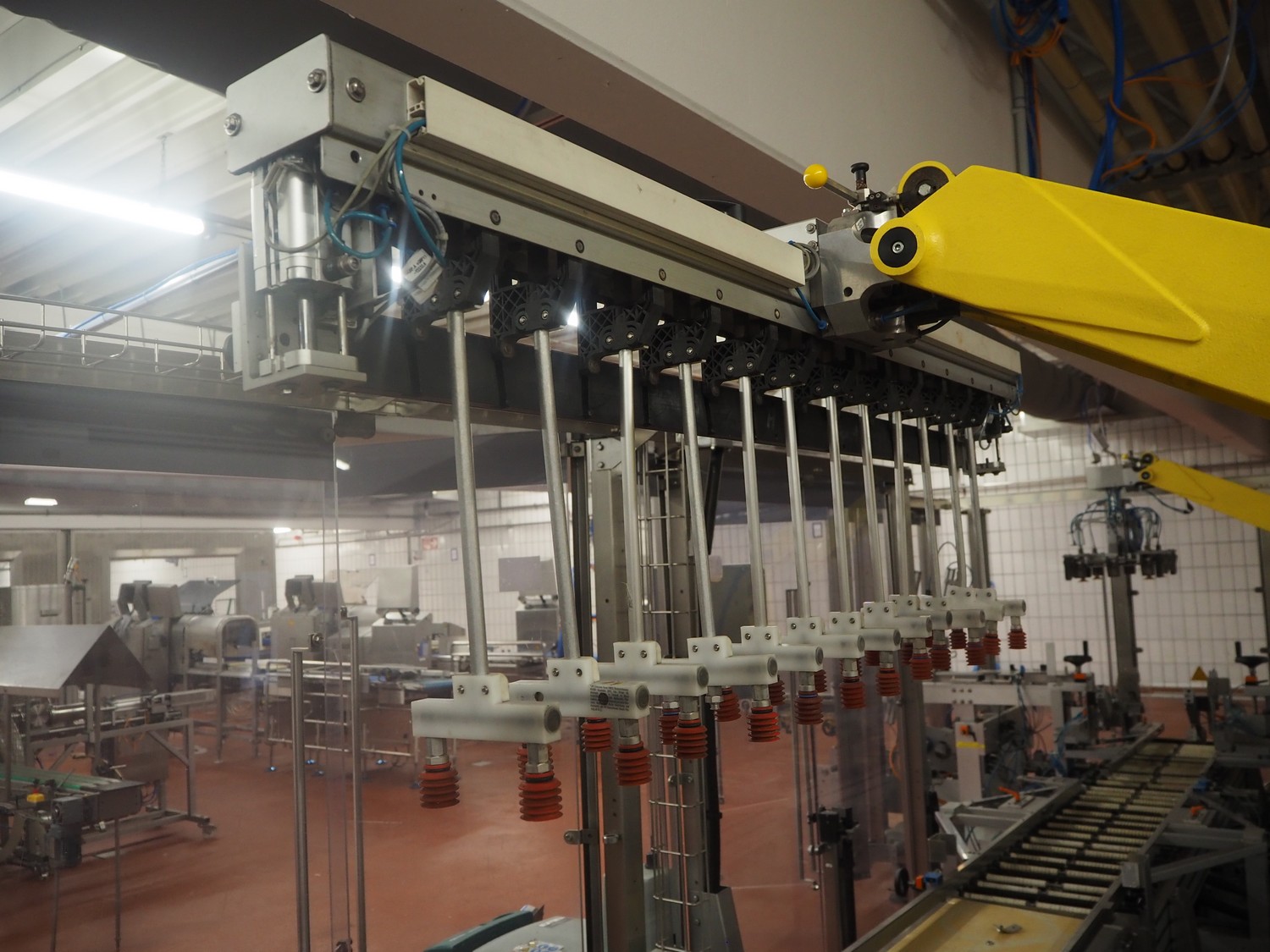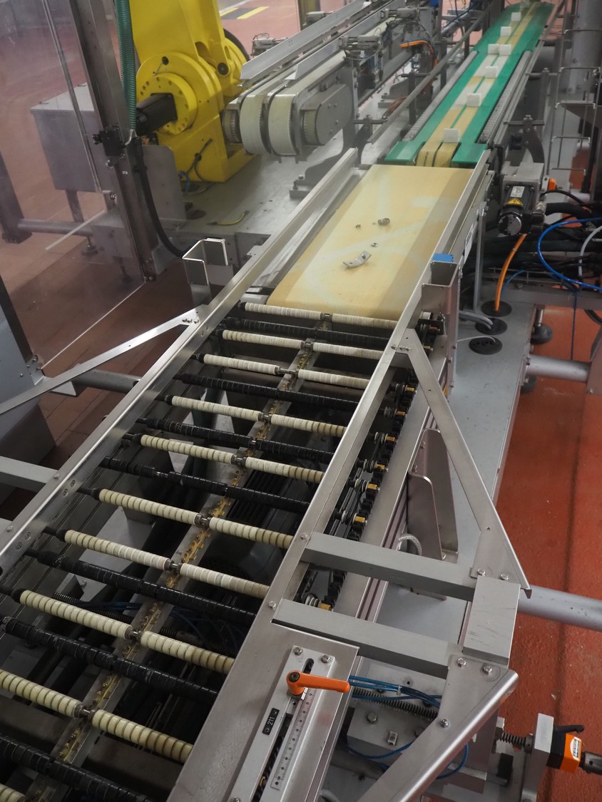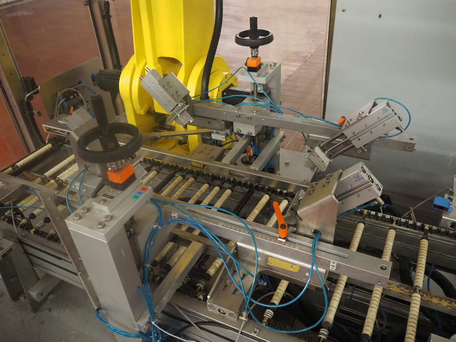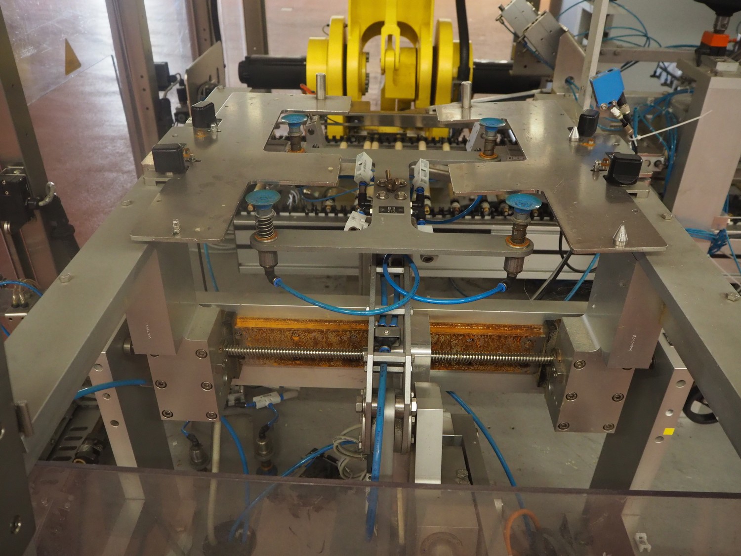 Bosch Sigpack Systems AG carton and lid erector with packaging robots, type: TTLi, number: J-01659-TTLi-077, year of construction: 2008, 2 packaging robots, Robatech glue unit, type: Concept A 8/6, plastic belts, belt width: (2x) 50 mm and 350 mm, total dimensions: 8500 mm x 4000 mm x 2000 mm.