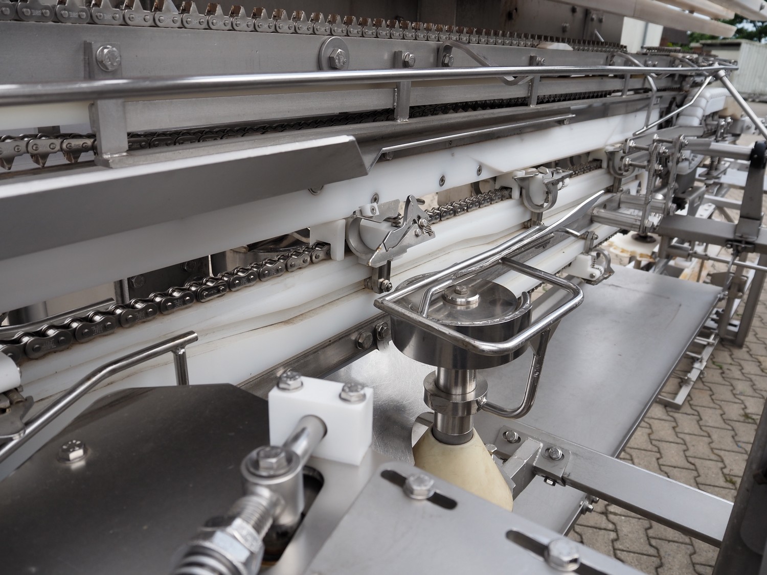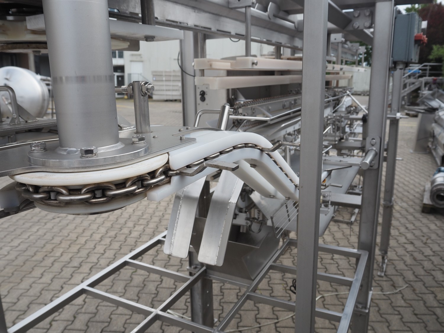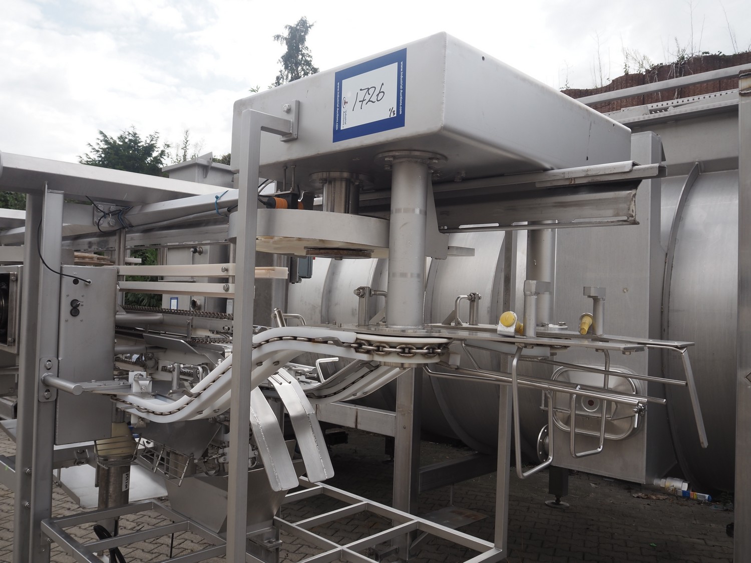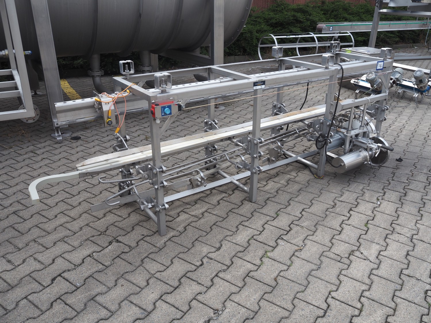 Stork leg cutter, model: MX H1863, type: 3989366, serial number: 470327/450, year of construction: 2007, s/s chain conveyor, total dimensions: (1x) 4750 mm x 1100 mm x 2200 mm, (1x) 3000 mm x 1000 mm x 1050 mm, (1x) 2600 mm x 800 mm x 1100 mm.
