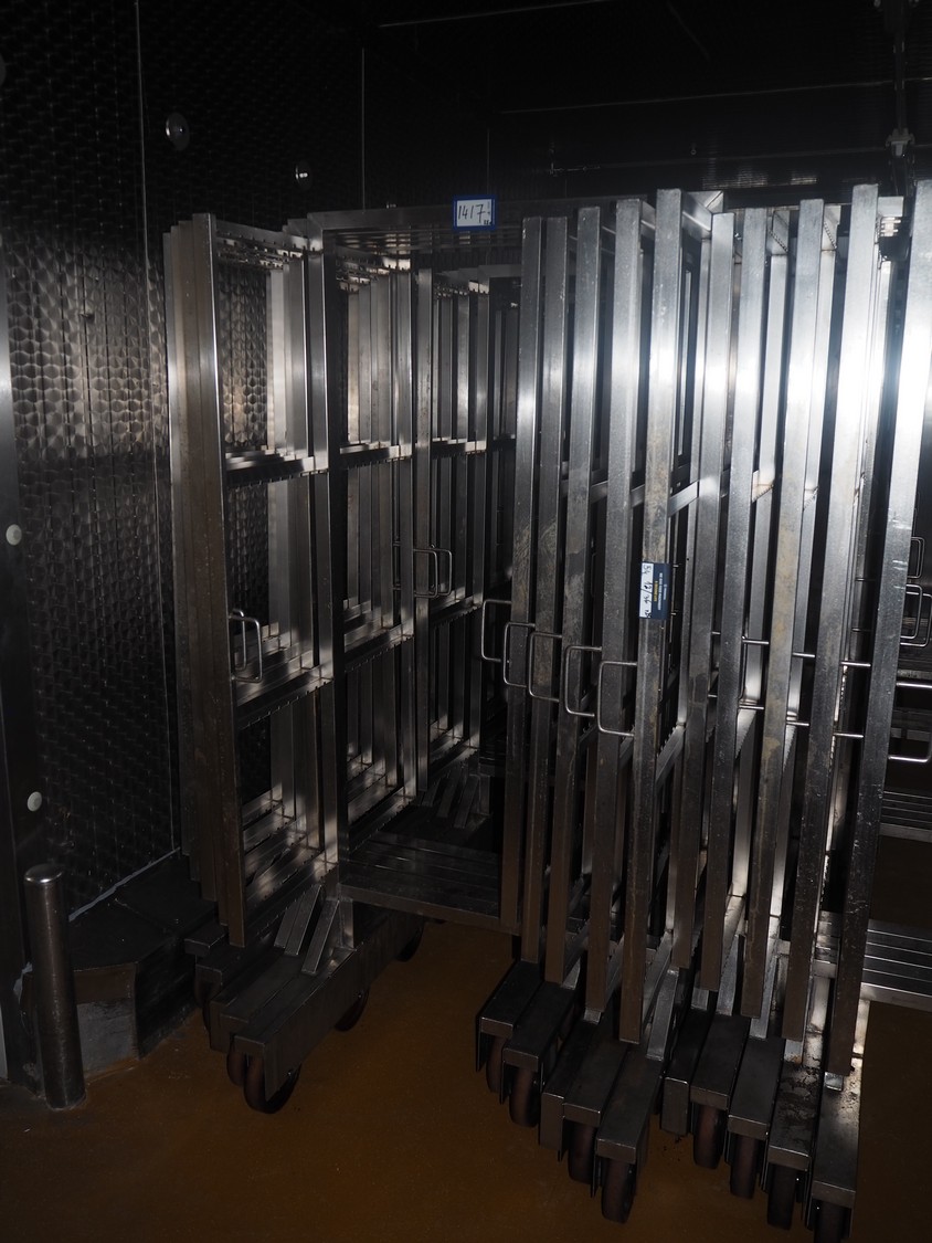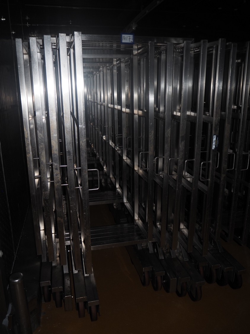 25 s/s H-profile smoke trolleys, 4 floors, dimensions each floor: 920 mm x 870 mm, total dimensions: (25x) 920 mm x 920 mm x 2100 mm.