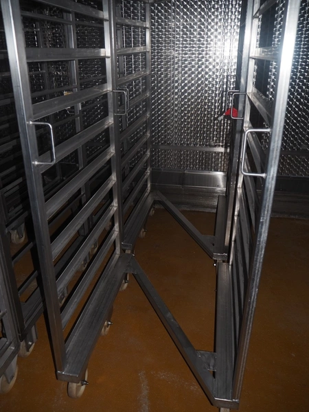 8 s/s Z-shape smoke trolleys, 9 floors, dimensions each floor: 900 mm x 780 mm, total dimensions: (8x) 1000 mm x 780 mm x 1900 mm.