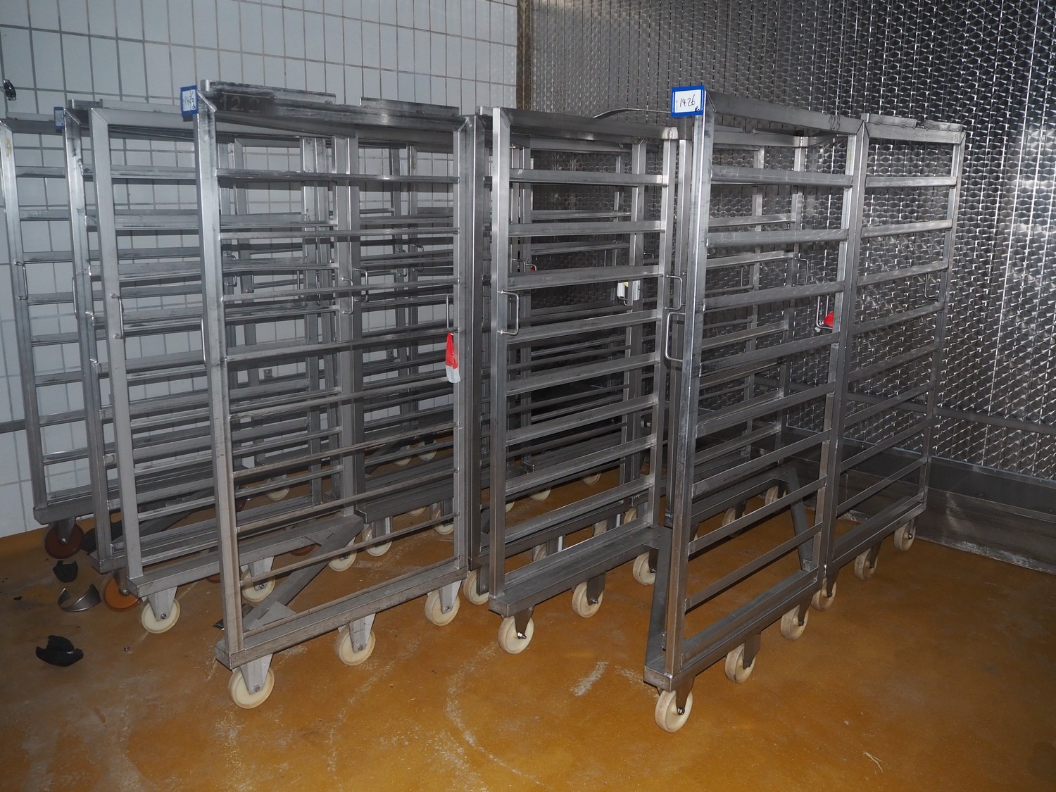 8 s/s Z-shape smoke trolleys, 9 floors, dimensions each floor: 900 mm x 780 mm, total dimensions: (8x) 1000 mm x 780 mm x 1900 mm.
