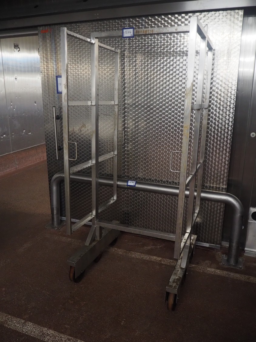 35 s/s H-profile smoke trolleys, 4 floors, floor dimensions: 920 mm x 870 mm, total dimensions: (35x) 920 mm x 920 mm x 2100 mm.