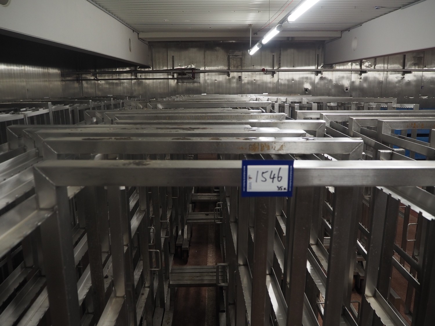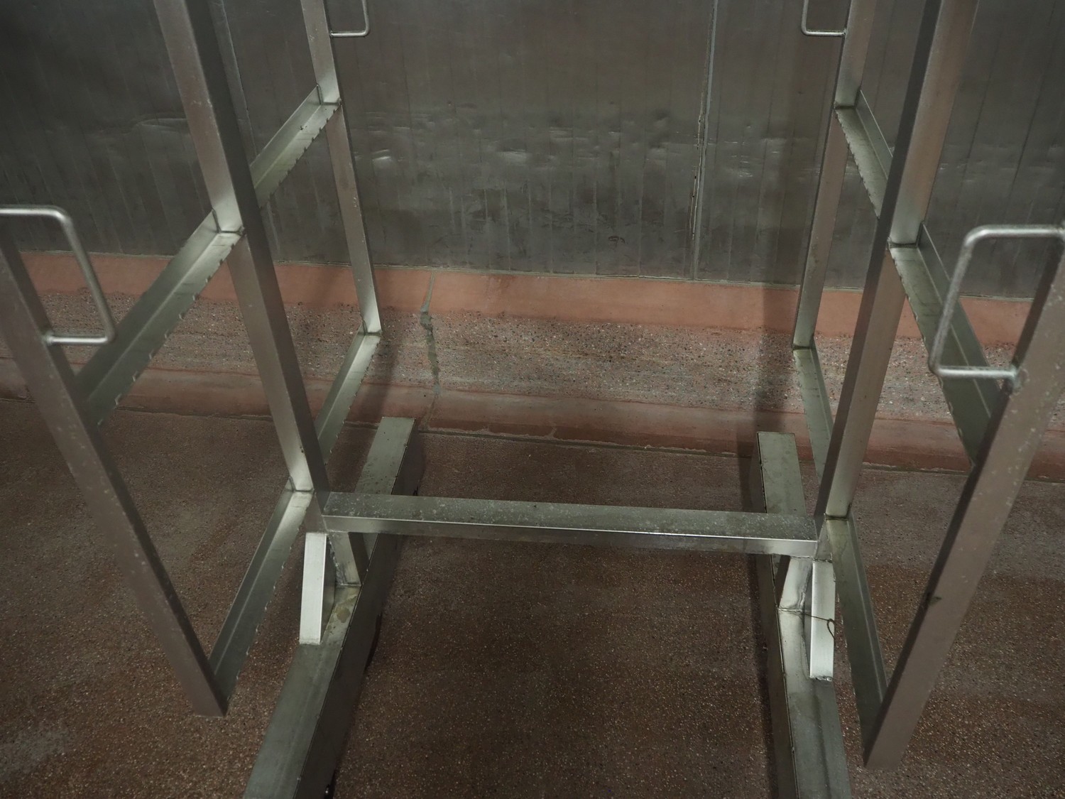 35 s/s H-profile smoke trolleys, 4 floors, floor dimensions: 920 mm x 870 mm, total dimensions: (35x) 920 mm x 920 mm x 2100 mm.