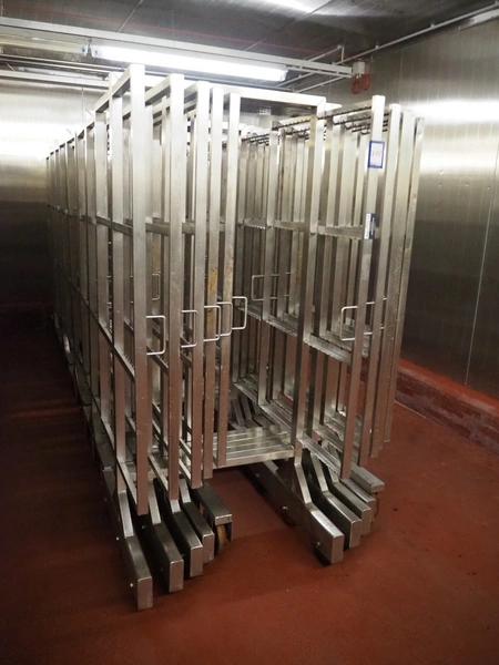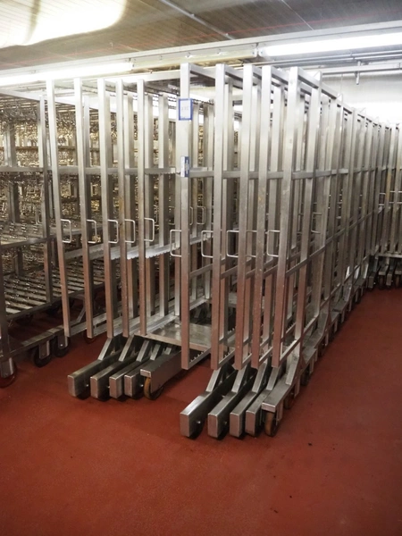 25 s/s H-profile smoke trolleys, 6 floors, dimensions each floor: 920 mm x 900 mm, total dimensions: (25x) 920 mm x 900 mm x 2090 mm.