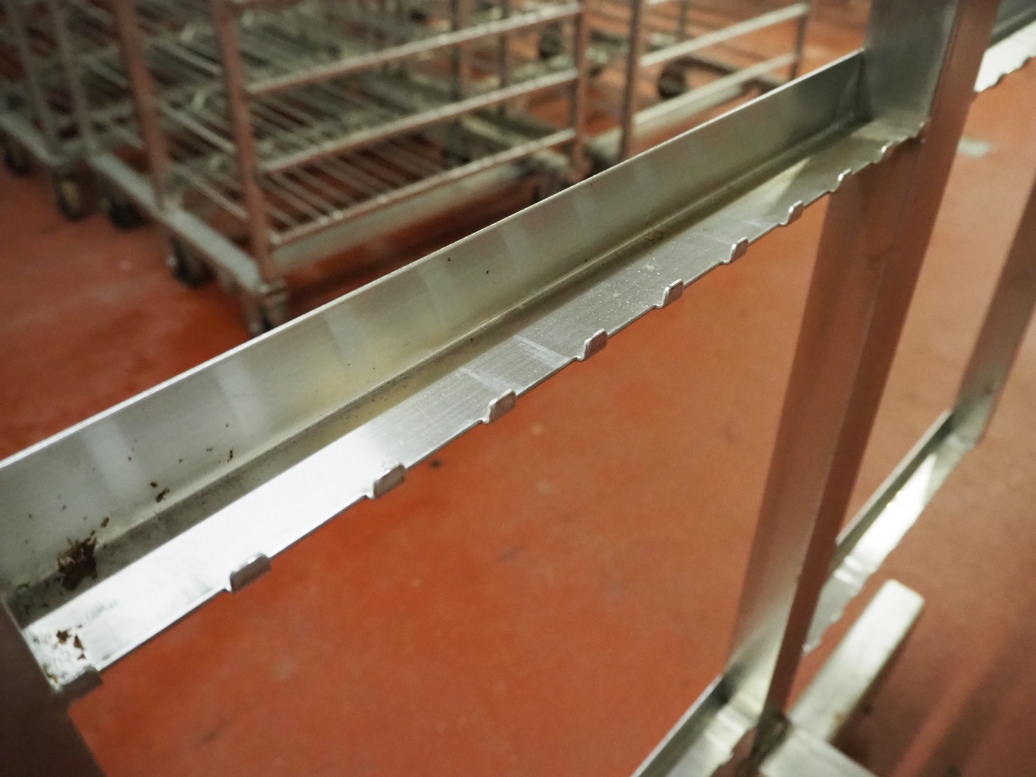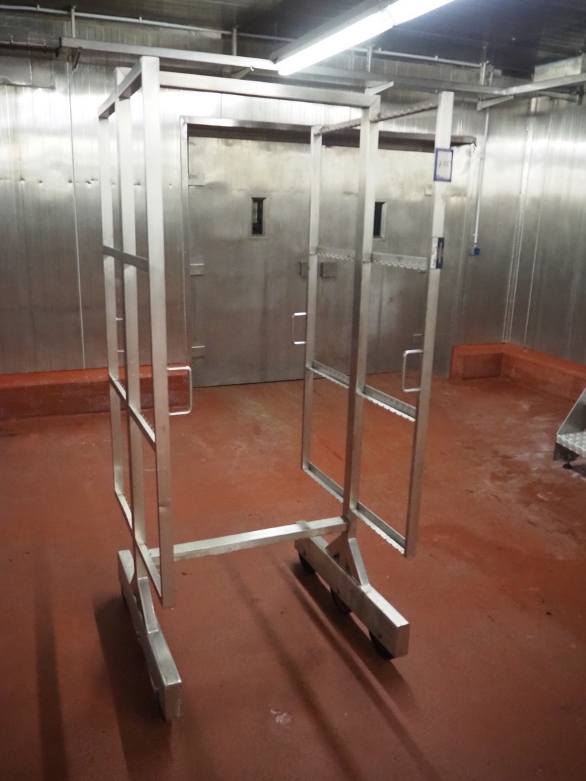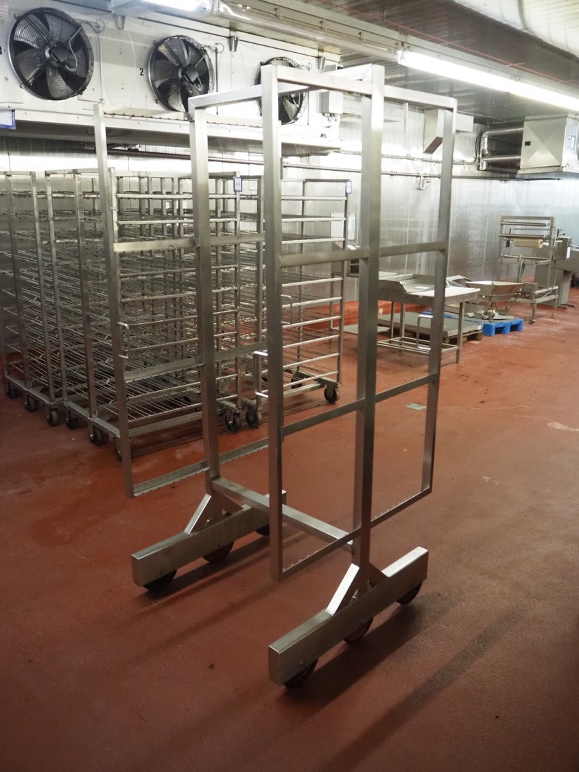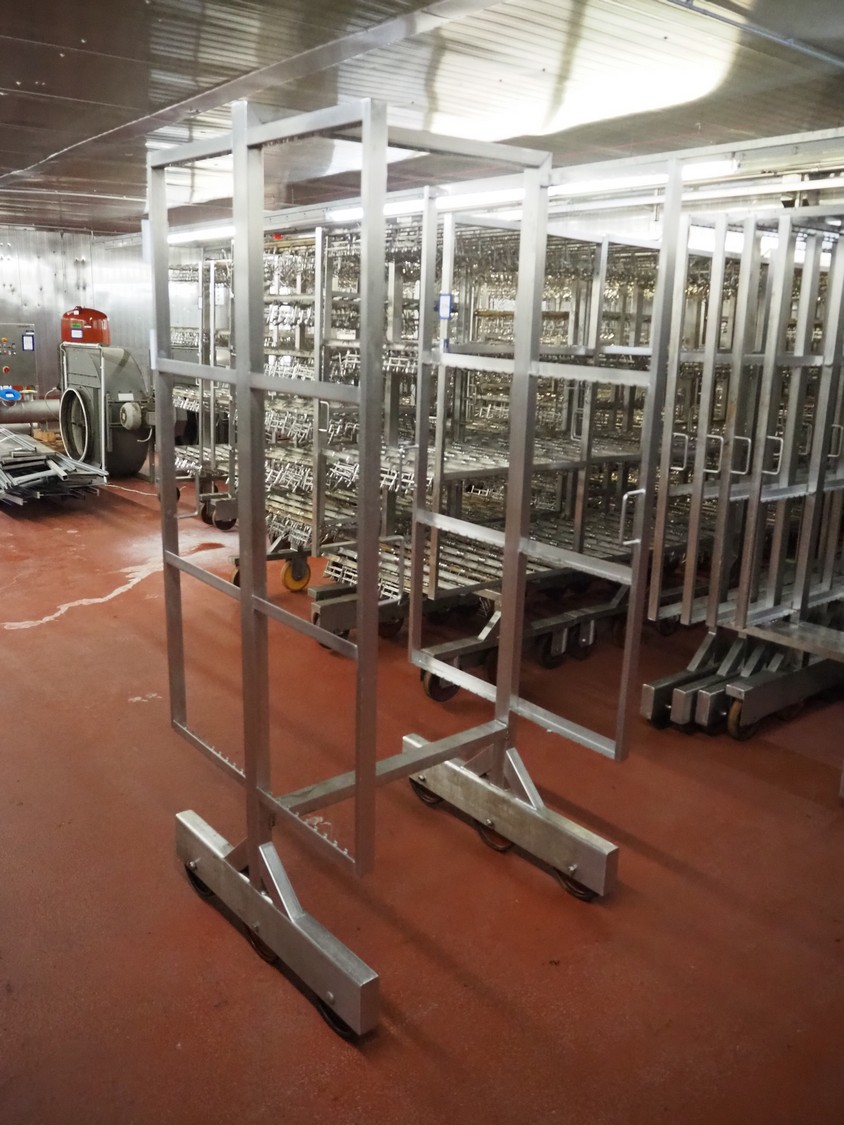 25 s/s H-profile smoke trolleys, 6 floors, dimensions each floor: 920 mm x 900 mm, total dimensions: (25x) 920 mm x 900 mm x 2090 mm.