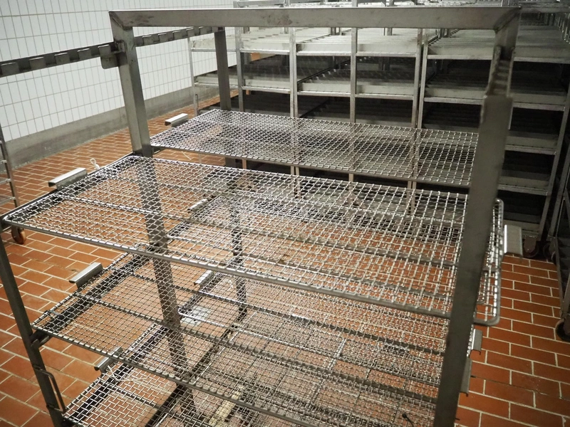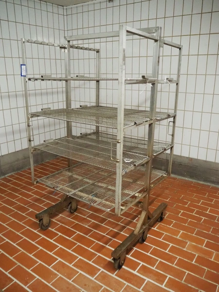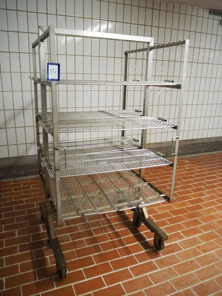 S/s smoke trolley, 5 floors with 8 plates, dimensions each floor: 1010 mm x 970 mm, total dimensions: 1020 mm x 980 mm x 1880 mm.