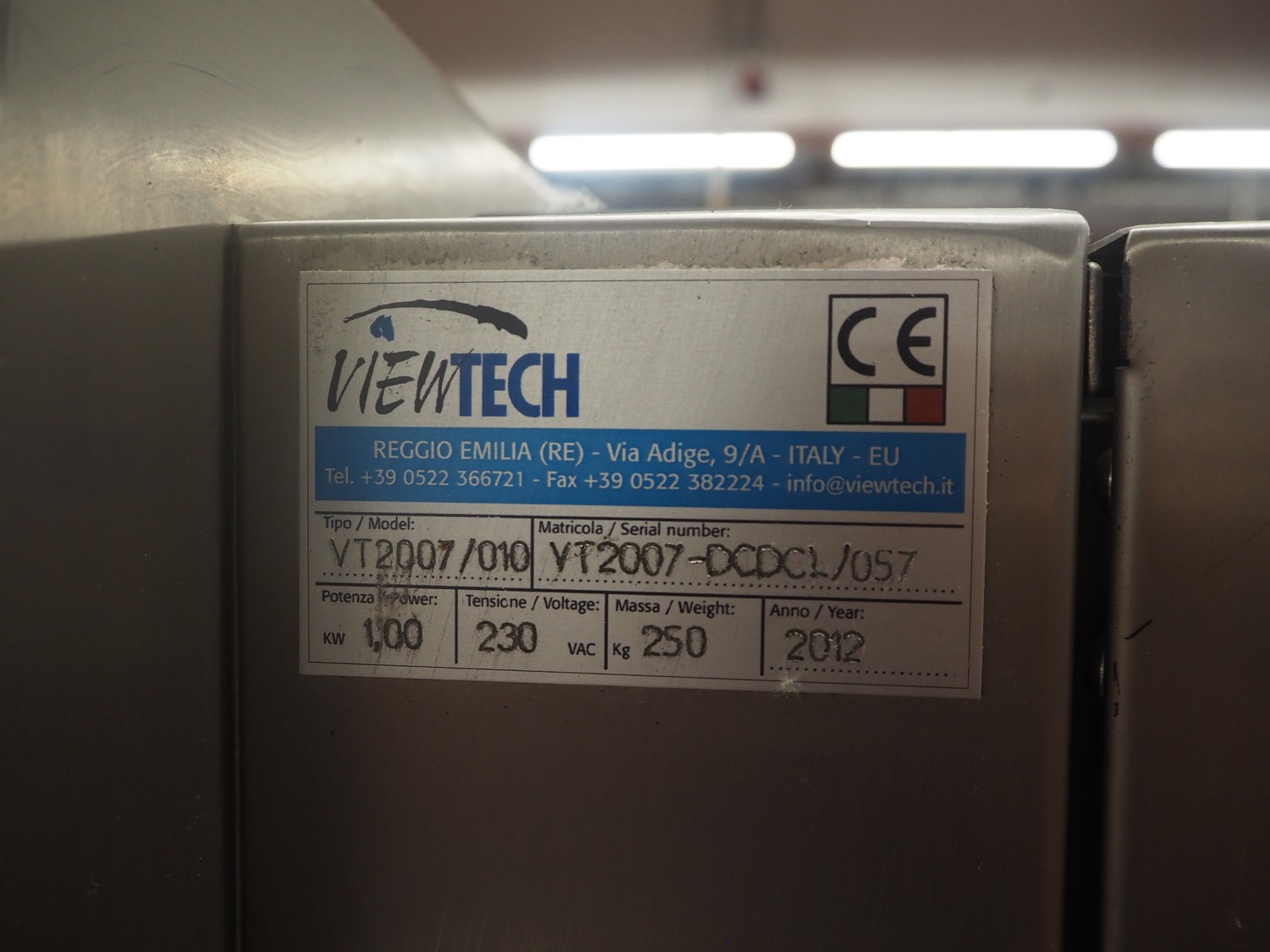 Viewtech optical sorting machine, type: VT2007/010, serial number: VT2007-DCDCL/057, year of construction: 2012, 230 V, 1 kW, plastic belt, belt width: 175 mm, clearance: 290 mm x 110 mm, total dimensions: 1300 mm x 1100 mm x 2100 mm.