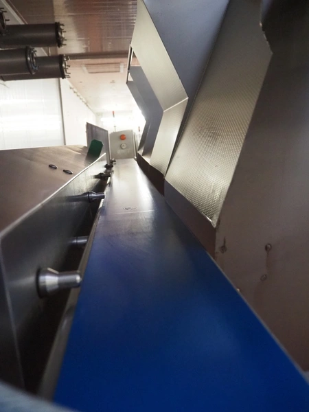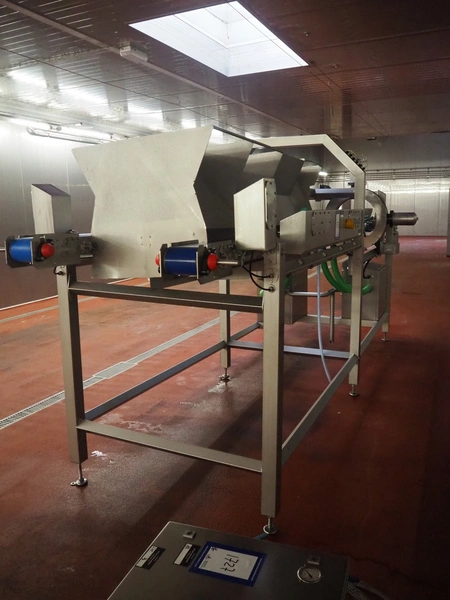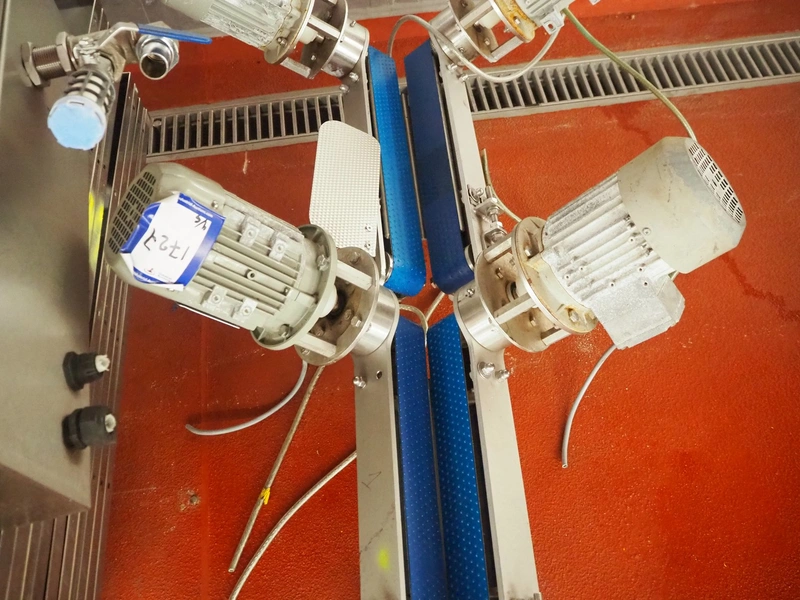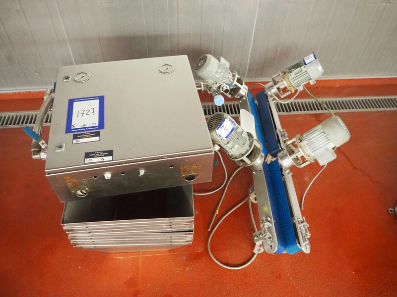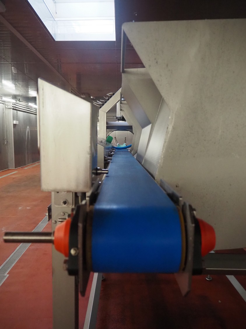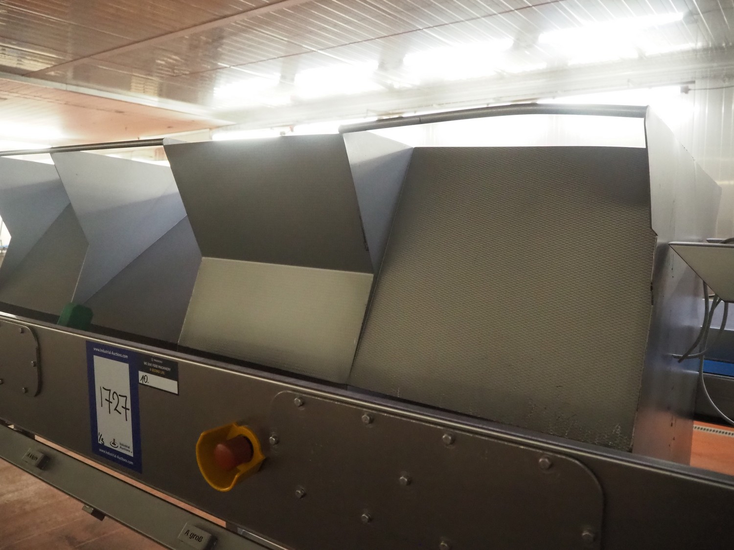 Select inline chicken paw selector, machine number: 508/509, plastic belt, belt width: (2x) 140, (1x) 60 mm, (4x) rejectors per side, total dimensions: 5100 mm x 2100 mm x 2350 mm. Including s/s switch cabinet, dimensions: 900 mm x 550 mm x 1850 mm.