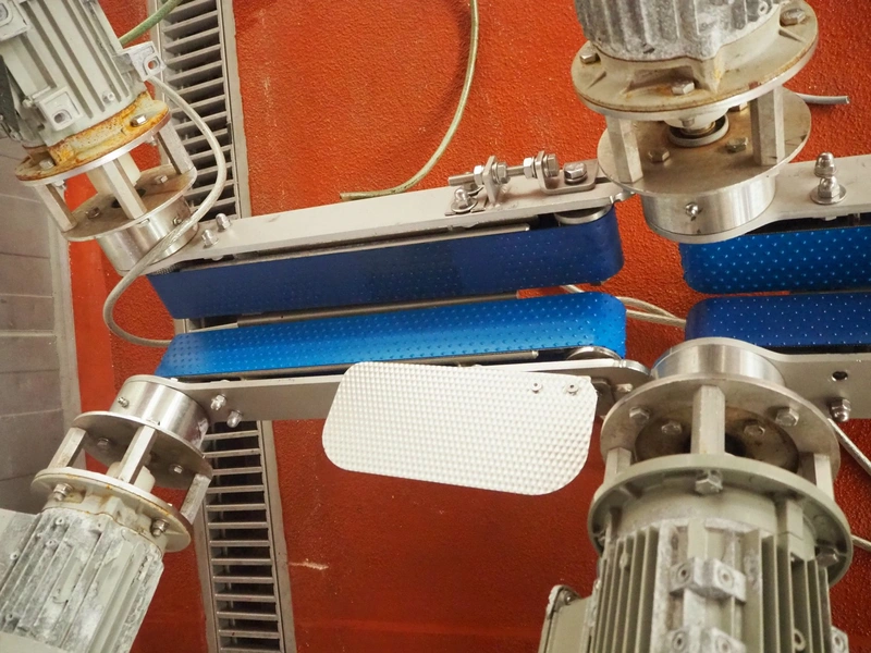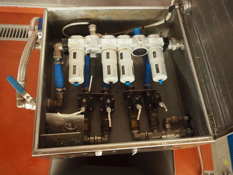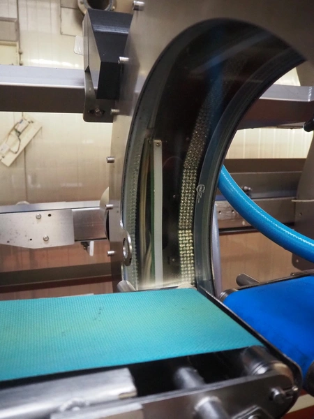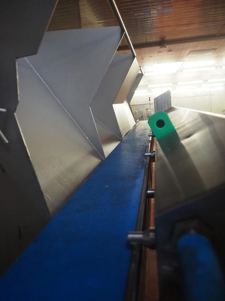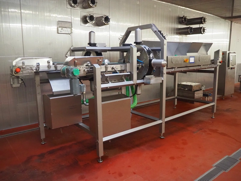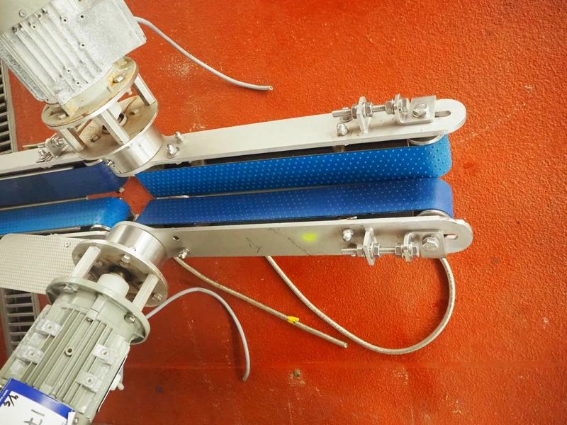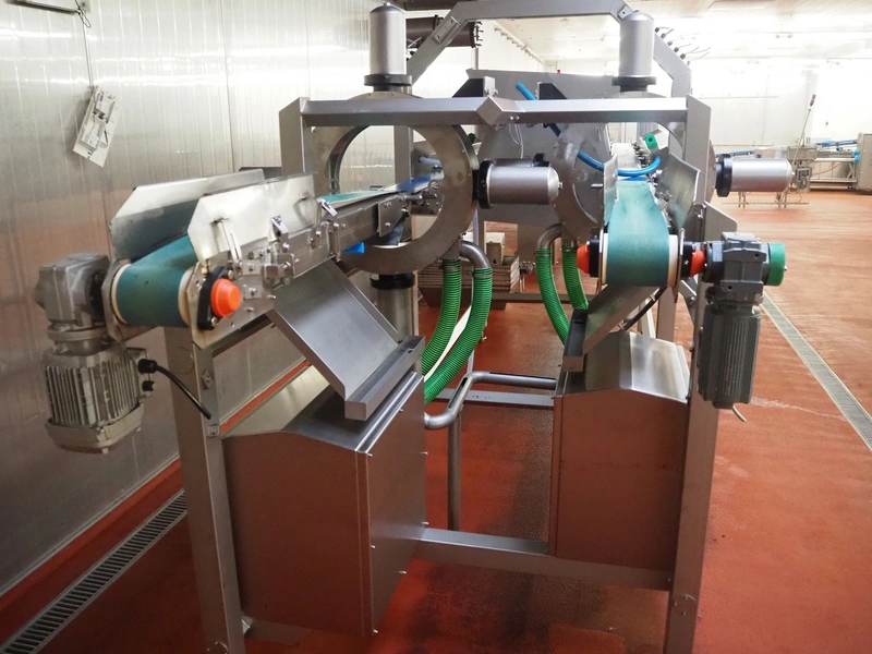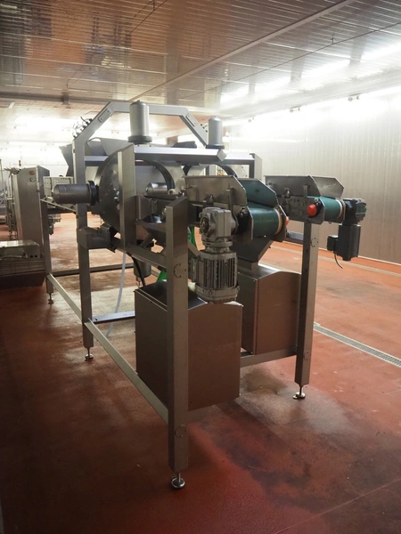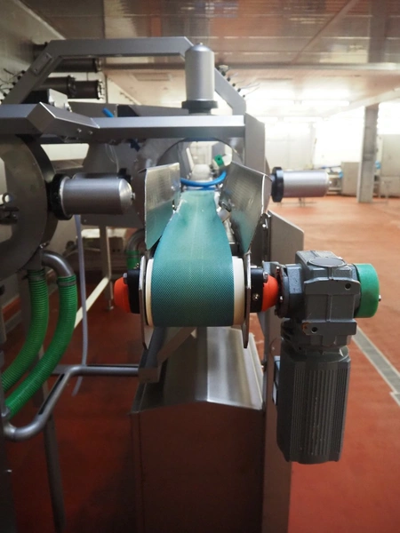 Select inline chicken paw selector, machine number: 508/509, plastic belt, belt width: (2x) 140, (1x) 60 mm, (4x) rejectors per side, total dimensions: 5100 mm x 2100 mm x 2350 mm. Including s/s switch cabinet, dimensions: 900 mm x 550 mm x 1850 mm.