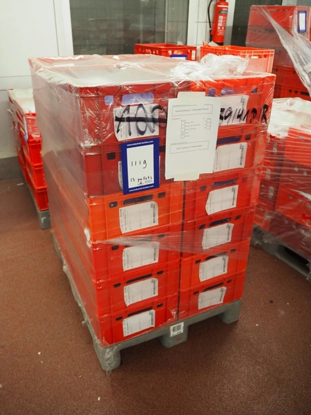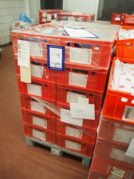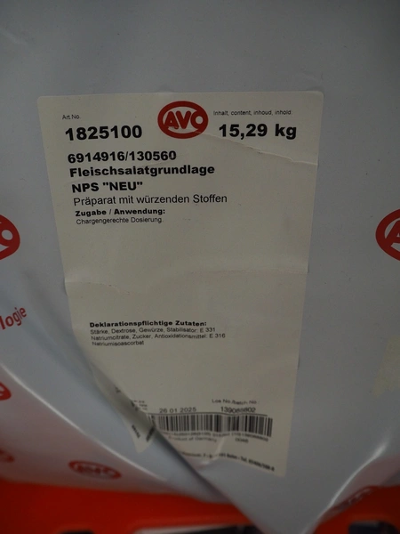 16 pallets with AVO-Werke, Gewürzmüller and Van Hees spices for meat salad and Kochschinken, total dimensions: (7x) 1200 mm x 800 mm x 1500 mm, (7x) 1200 mm x 800 mm x 1300 mm and (2x) 1200 mm x 800 mm x 920 mm.
