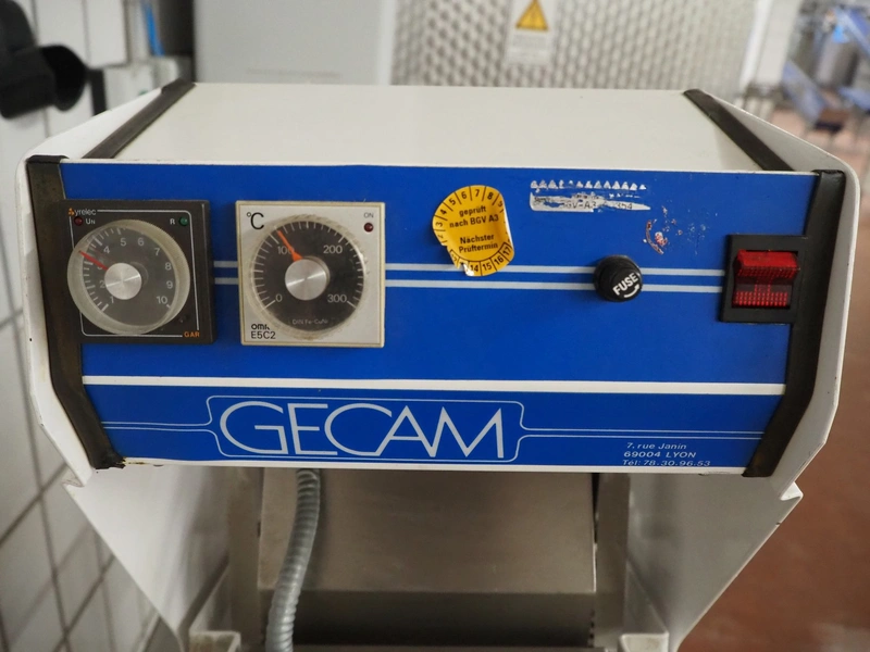 Gecam traysealer, type: 3101 R, number: 129911, year of construction: 1987, dimensions: 1000 mm x 350 mm x 700 mm.