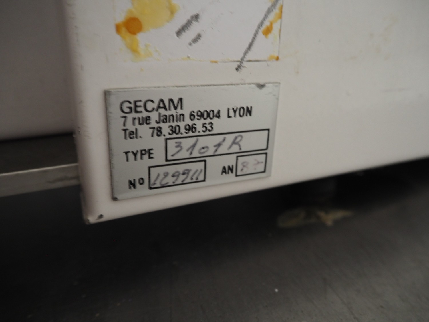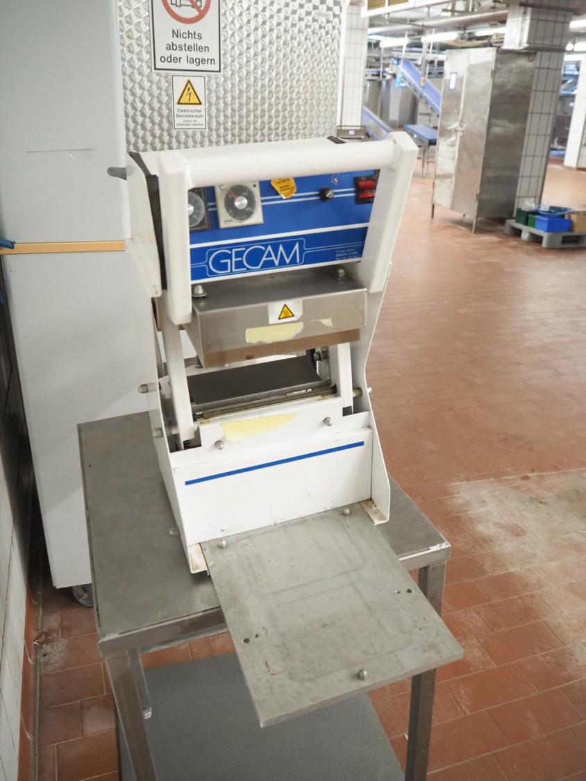 Gecam traysealer, type: 3101 R, number: 129911, year of construction: 1987, dimensions: 1000 mm x 350 mm x 700 mm.