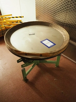 Trepo-Stumpf GmbH turning table, steel frame, s/s top with wooden rim, ø top: 850 mm, total ø: 1000 mm, height: 800 mm.1 bidLot is closed