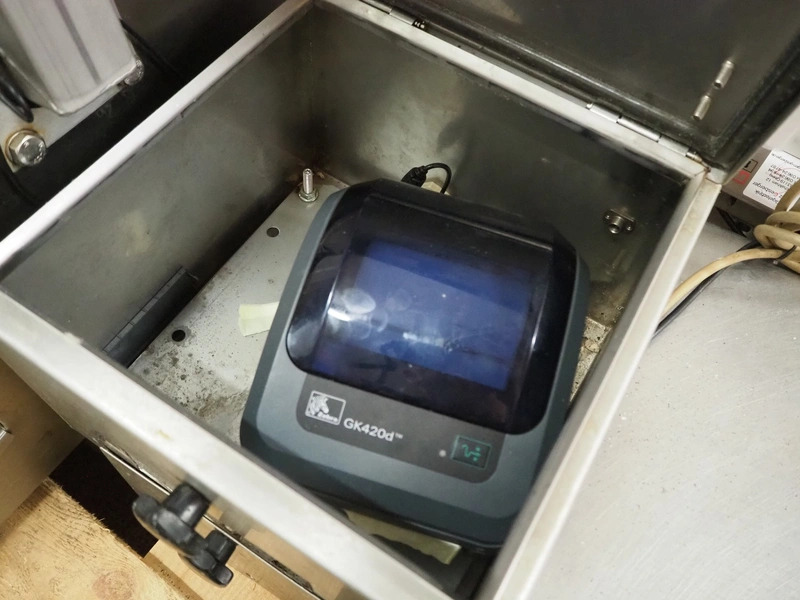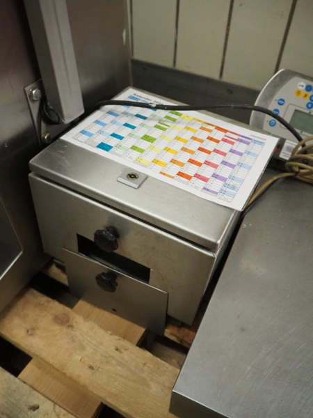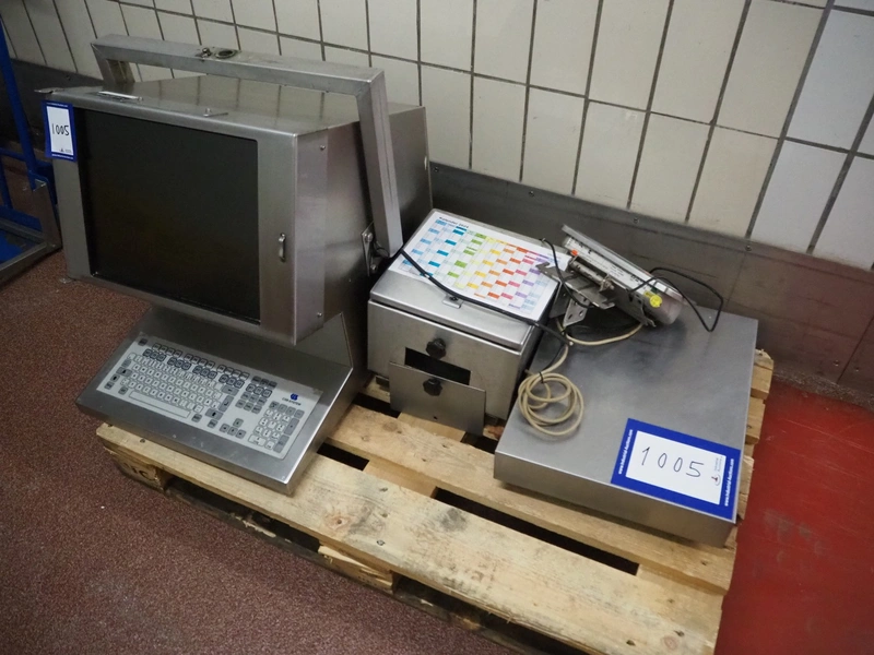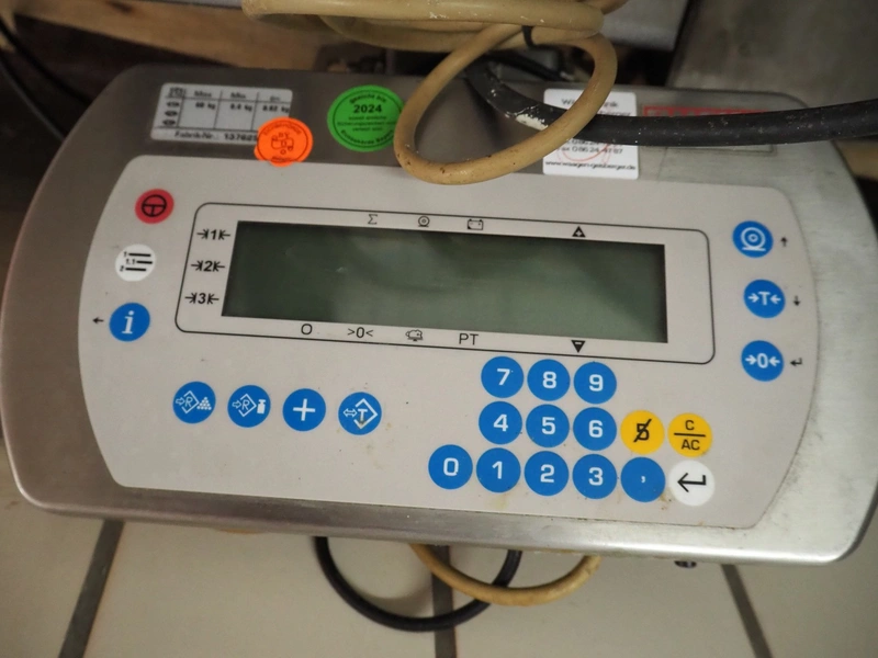 Rhewa-Waagenfabrik weighing scale with indicator, dimensions scale: 500 mm x 400 mm, computer cabinet, dimensions: 750 mm x 320 mm x 750 mm.
