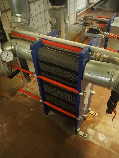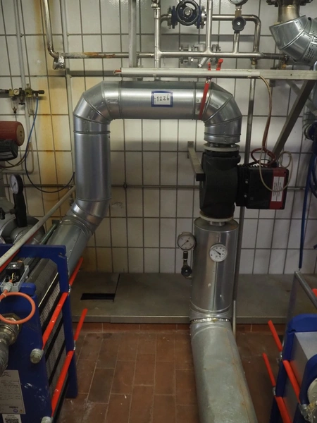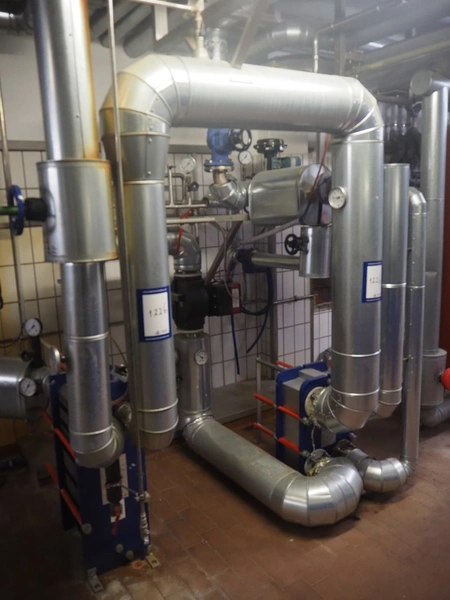 Warm water system, consisting of: 2 Alfa Laval heat exchangers, type: M6-FG and TS6-MFG, number: AAM1003445 and 30126-01838, year of construction: 2023 and 2022, minimum / maximum temperature: 0 - 140 °C and 0 - 60 °C, 2 Grundfos pumps, 2 Ari Armaturen pneumatic actuators, 1 steel pressure vessel and insulated pipes.