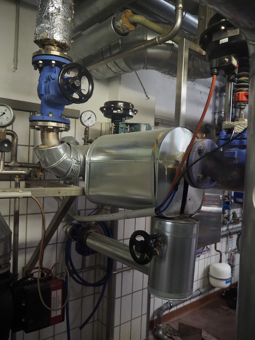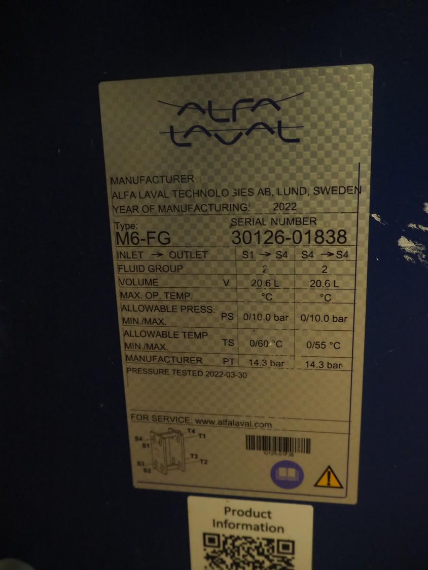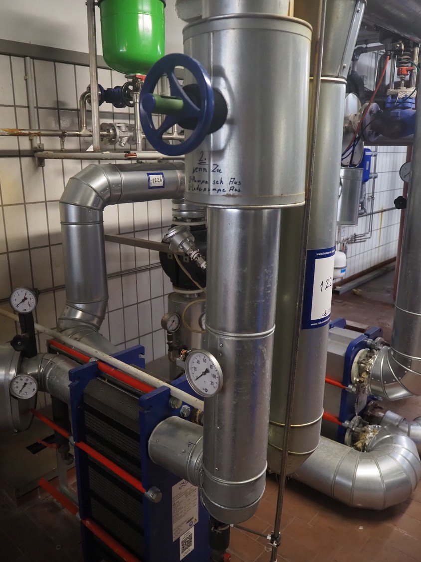 Warm water system, consisting of: 2 Alfa Laval heat exchangers, type: M6-FG and TS6-MFG, number: AAM1003445 and 30126-01838, year of construction: 2023 and 2022, minimum / maximum temperature: 0 - 140 °C and 0 - 60 °C, 2 Grundfos pumps, 2 Ari Armaturen pneumatic actuators, 1 steel pressure vessel and insulated pipes.