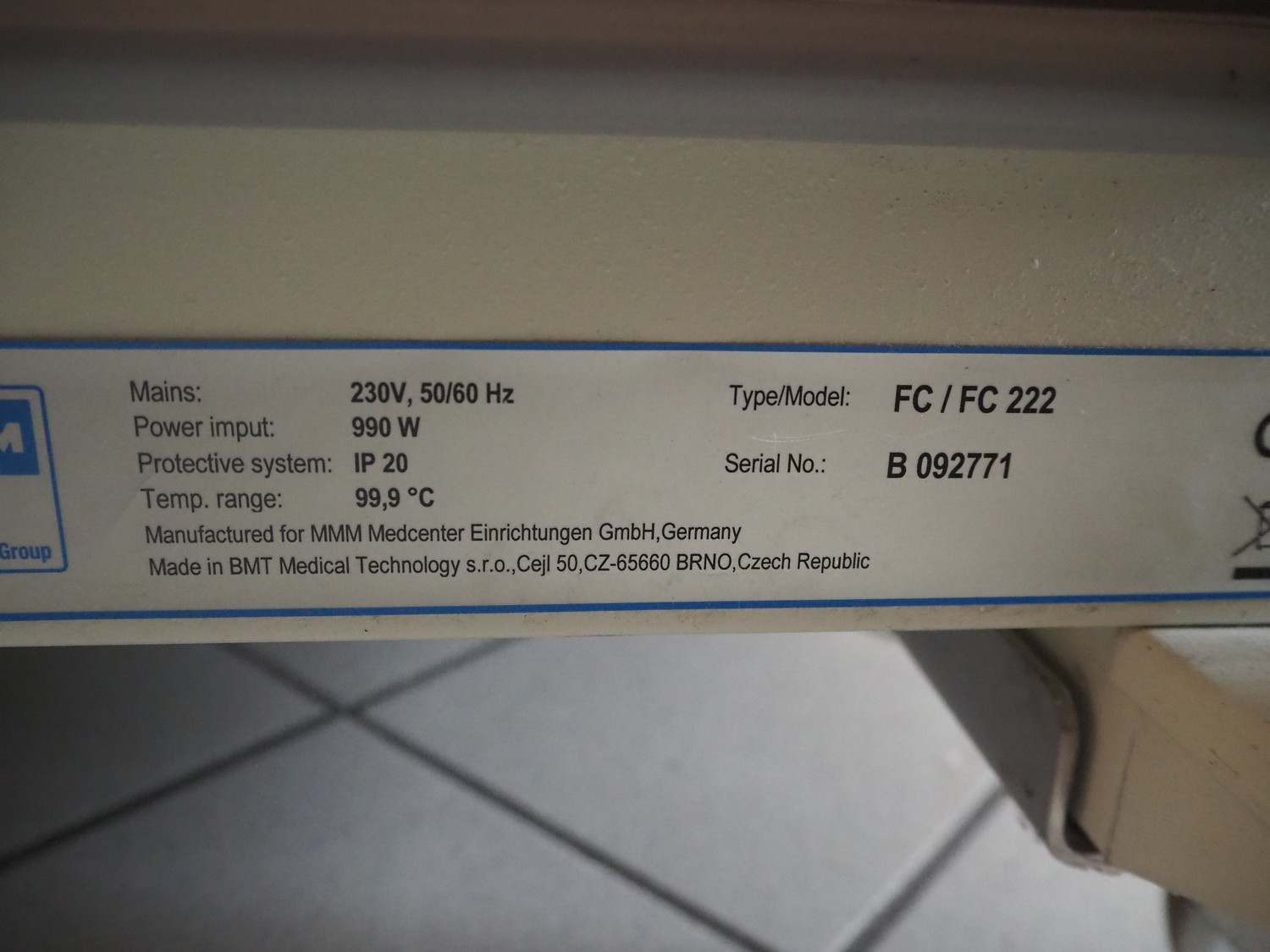 MMM-Group incubator, model: Friocell, type: FC / FC 222, dimensions: 750 mm x 730 mm x 1350 mm.