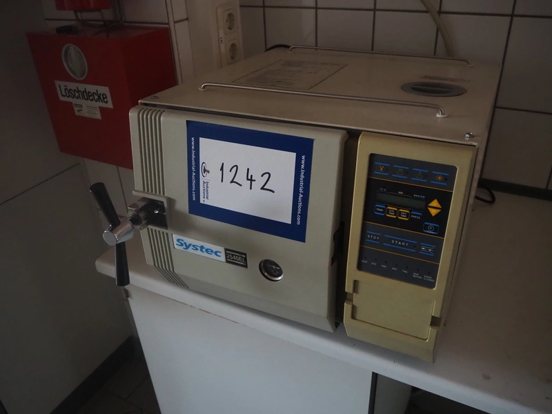 Tuttnauer autoclave, model: 2540 EL, serial number: 9512042, year of construction: 1996, 230 V, 1 Ph, 50 Hz, 9.6 A, inside dimensions: Ø 250 mm x 470 mm, total dimensions: 600 mm x 500 mm x 360 mm.