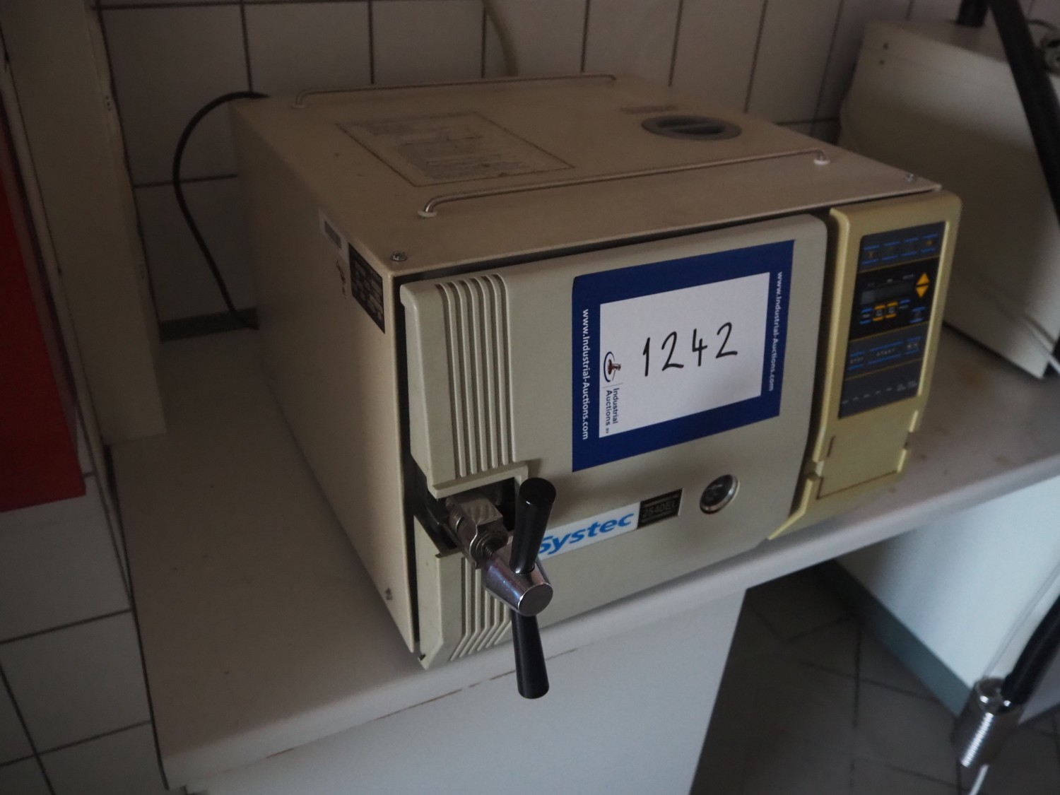 Tuttnauer autoclave, model: 2540 EL, serial number: 9512042, year of construction: 1996, 230 V, 1 Ph, 50 Hz, 9.6 A, inside dimensions: Ø 250 mm x 470 mm, total dimensions: 600 mm x 500 mm x 360 mm.