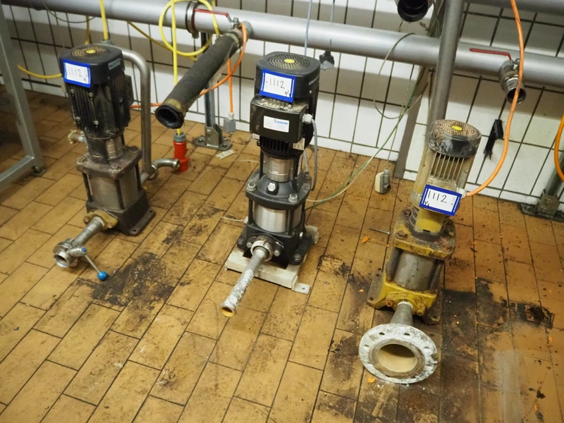 2 Grundfos and 1 other centrifugal pump, dimensions: (2x) 700 mm x 250 mm x 700 mm and 650 mm x 300 mm x 1250 mm.