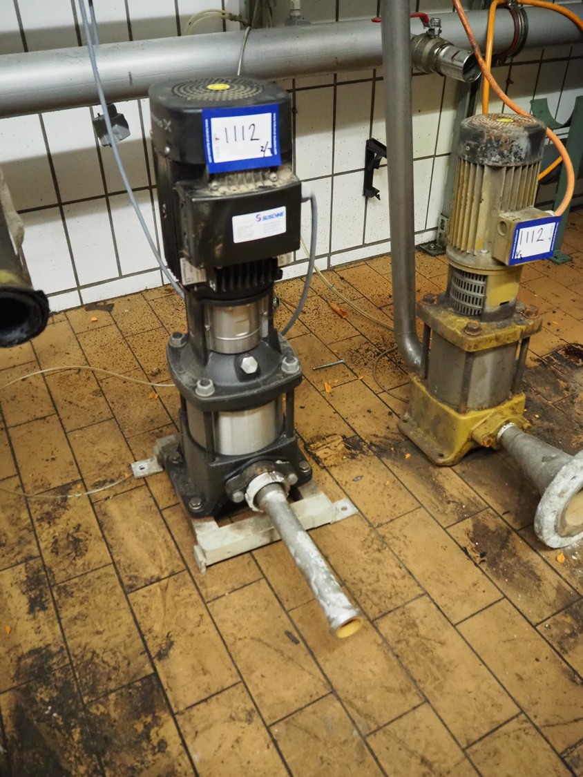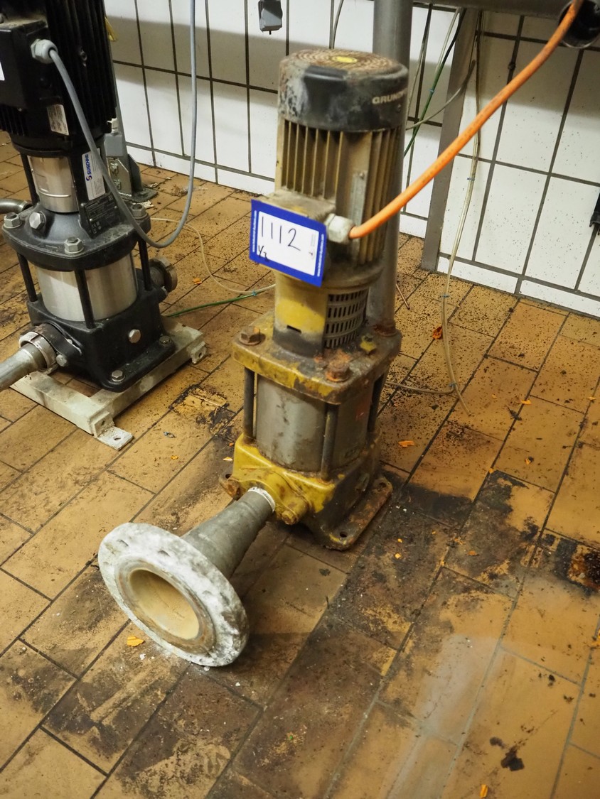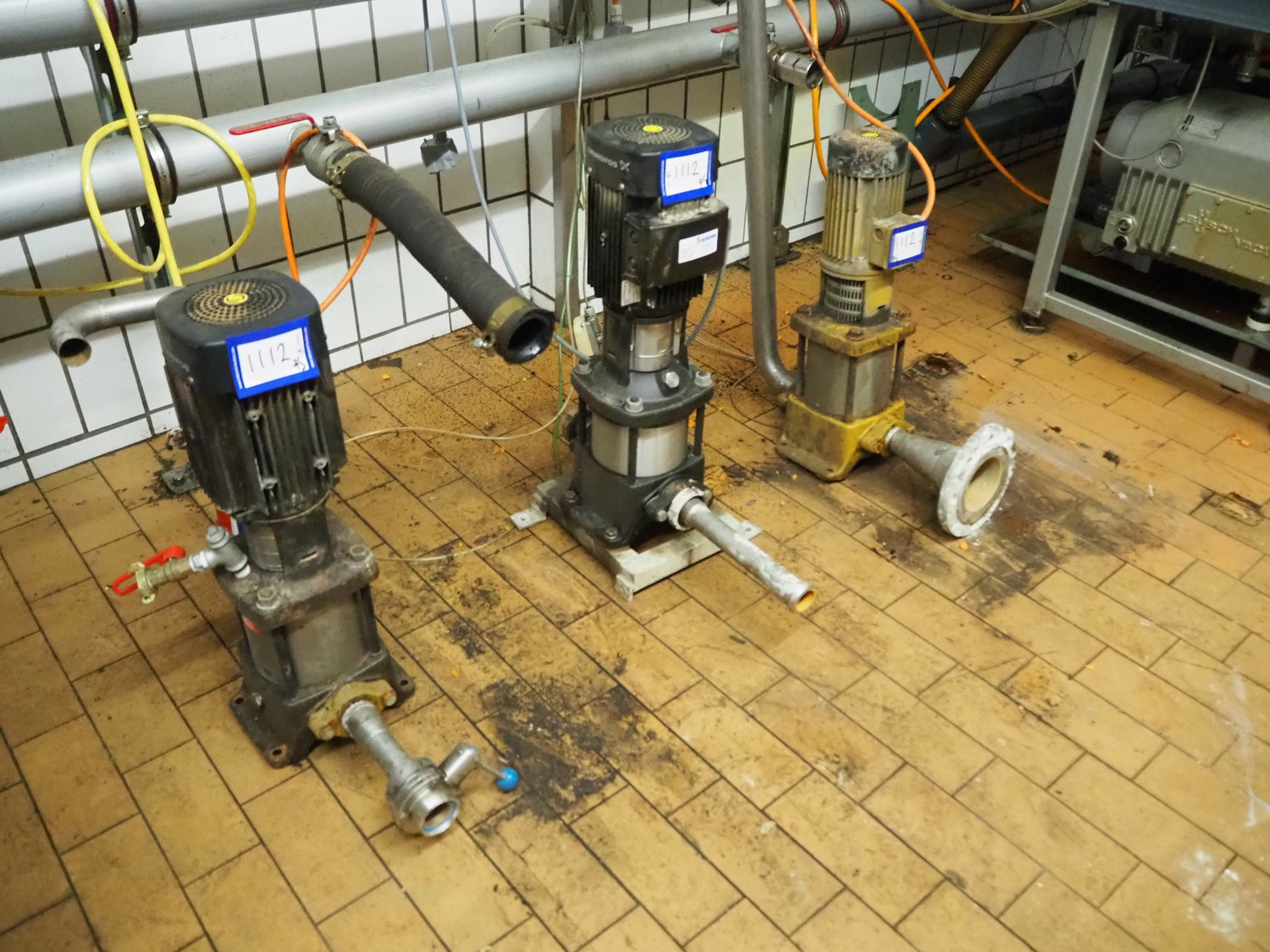 2 Grundfos and 1 other centrifugal pump, dimensions: (2x) 700 mm x 250 mm x 700 mm and 650 mm x 300 mm x 1250 mm.