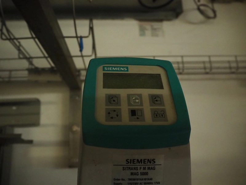 Siemens flowmeter, model: Sitrans F M MAG 5000, serial number: N1D8302222, 115/230 V, 50/60 Hz, dimensions: 200 mm x 150 mm x 450 mm.